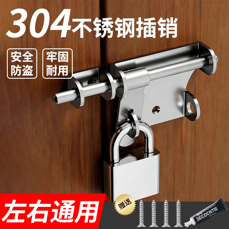 📚 入户防盗门二道门锁卡扣免打孔老式门扣锁不锈钢插销门栓挂锁门扣