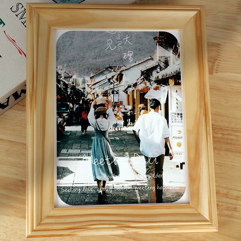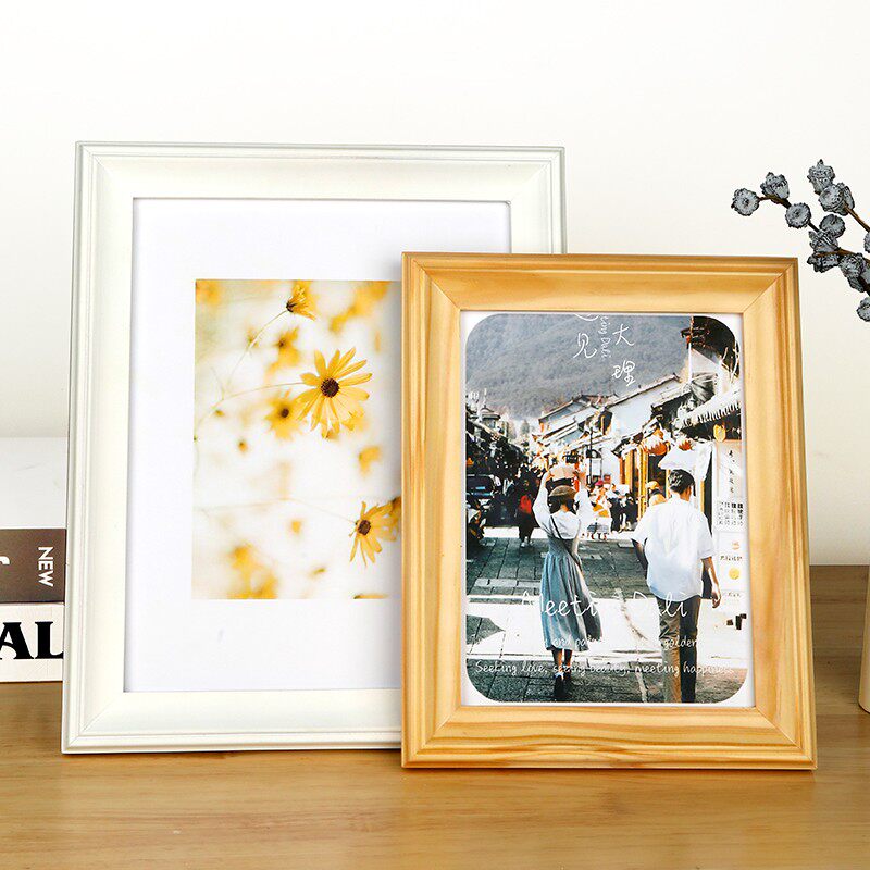 📚 欧式简约复古原木实木制8寸 10寸白色儿童小相框画框照片架摆件台