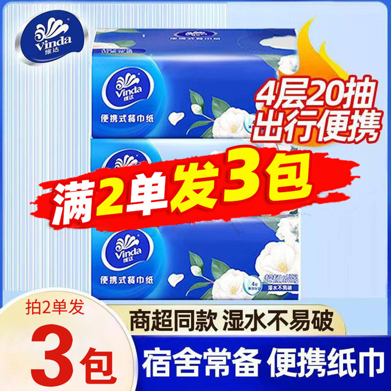 📚 维达便携式餐巾纸4层20抽家用可湿水面巾纸2元包邮购小商品88vip