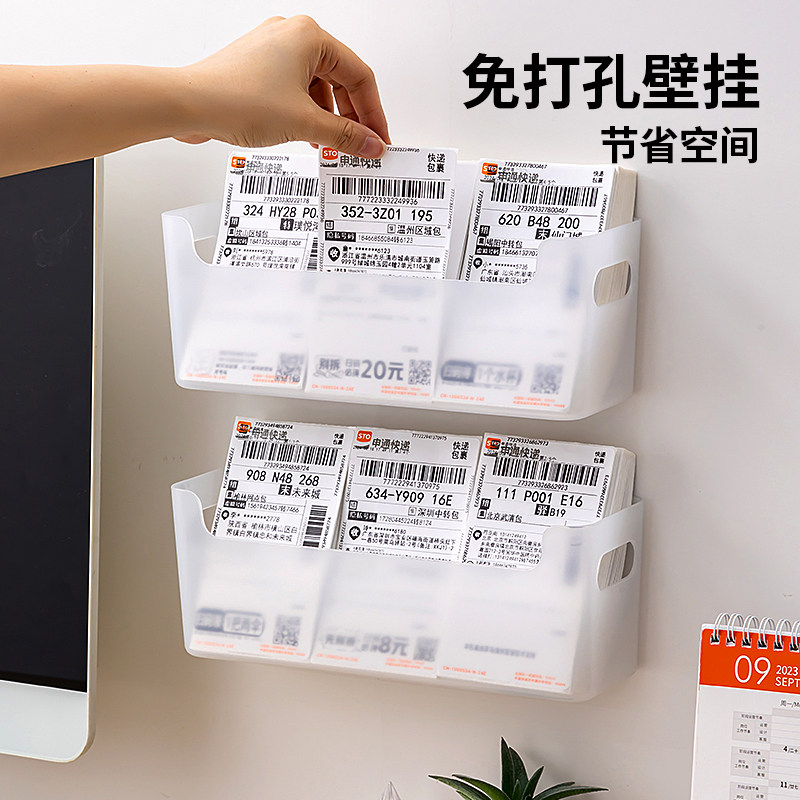 📚 壁挂式免打孔快递单收纳盒送货单回单收纳架凭证票据分拣盒整理筐