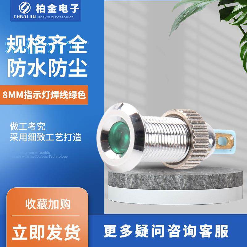 📚 迷你小型电源指示灯 金属信号灯8MM指示灯焊线绿色防水带线指示灯