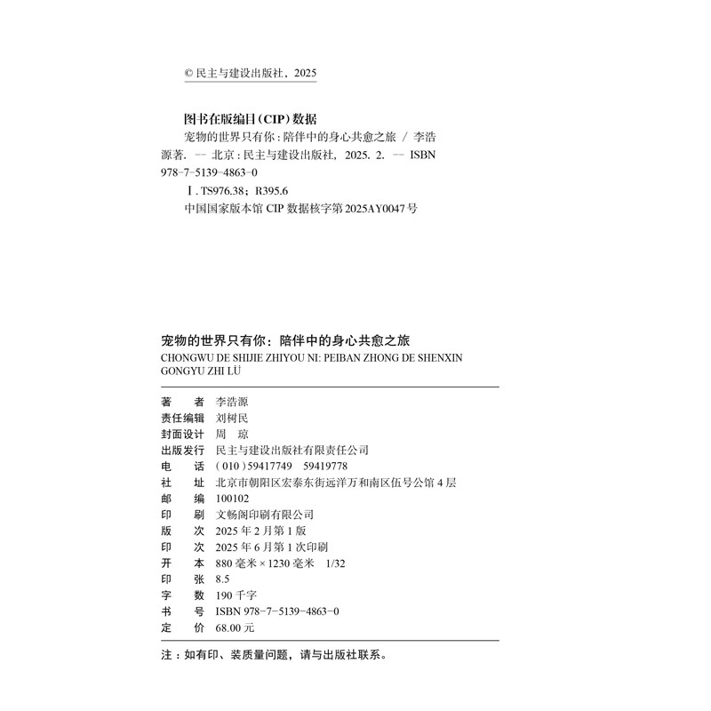 📚 宠物的世界只有你:陪伴中的身心共愈之旅李浩源心理学民主与建设出版社凤凰新华书店旗舰店