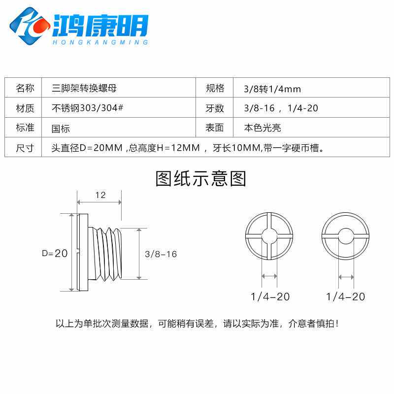 📚 云台配件三脚架转接螺丝3/8互转1/4大头十字一字槽不锈钢转换螺母