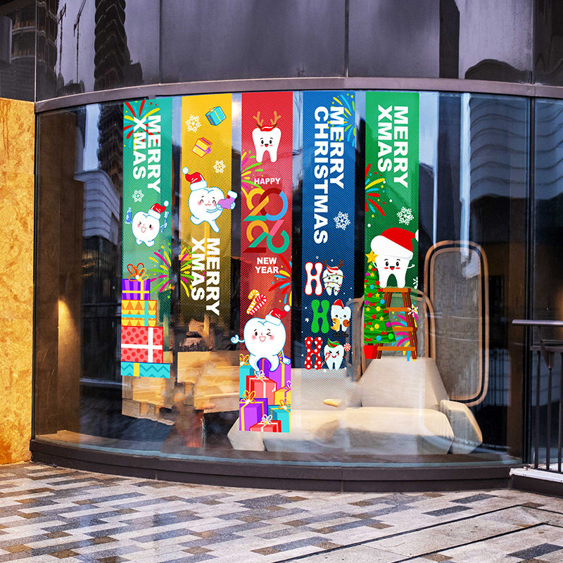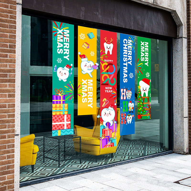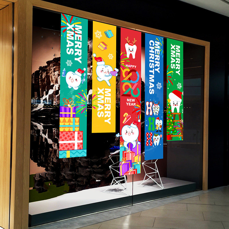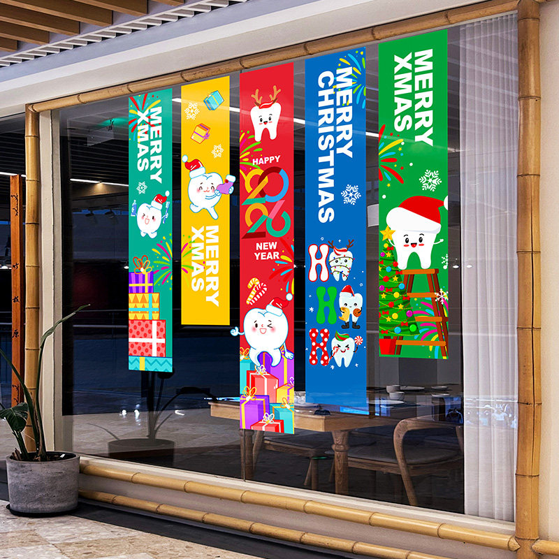 📚 牙科诊所圣诞玻璃贴口腔医院新年双旦条幅挂幅对联静电贴齿科氛围