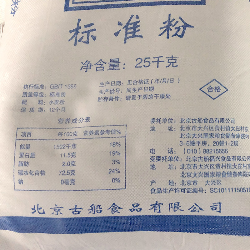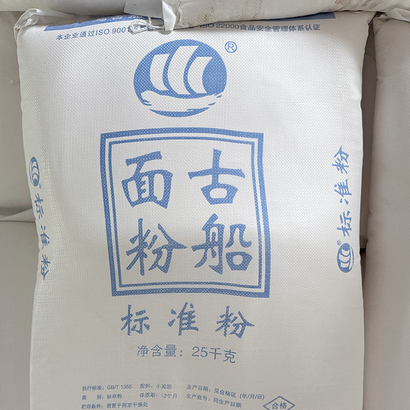 📚 古船面粉标准粉25kg50斤家用老面粉粗磨面适合做烧饼油条馒头面条