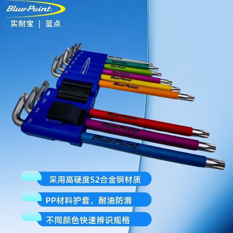 📚 蓝点 BluePoint 9件彩虹色内六花型扳手组套T10-T50 L型花键扳手