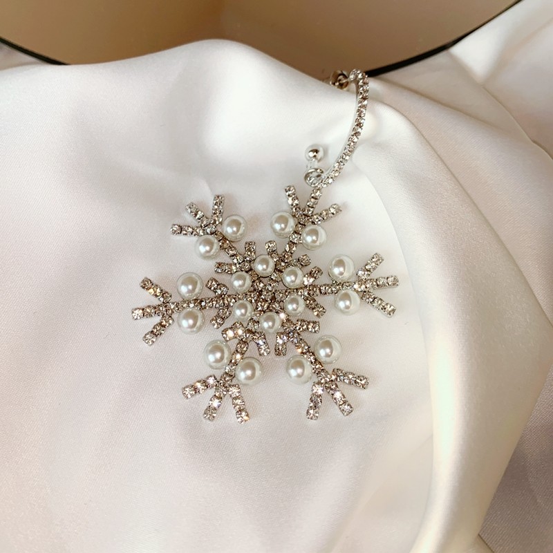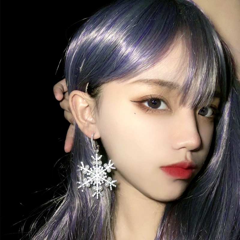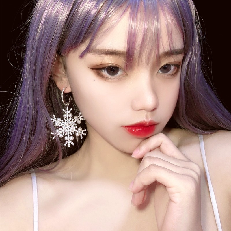 📚 单只银针夸张珍珠锆石雪花耳坠2023年新款潮在逃公主耳环冬天百搭