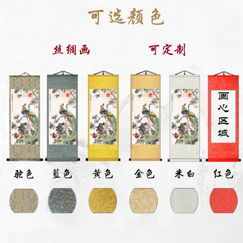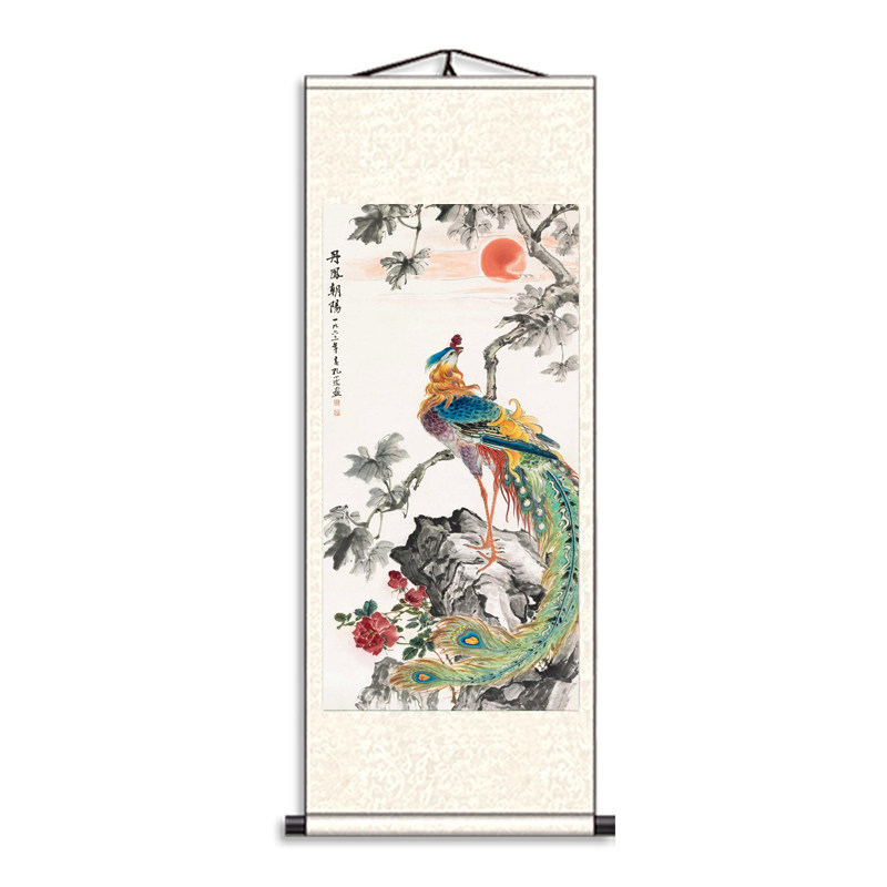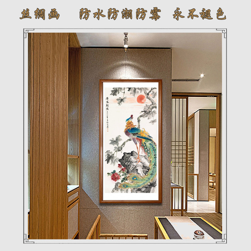 📚 客厅竖版背景墙花鸟国画丹凤朝阳卷轴画凤凰装饰画书房牡丹花鸟画