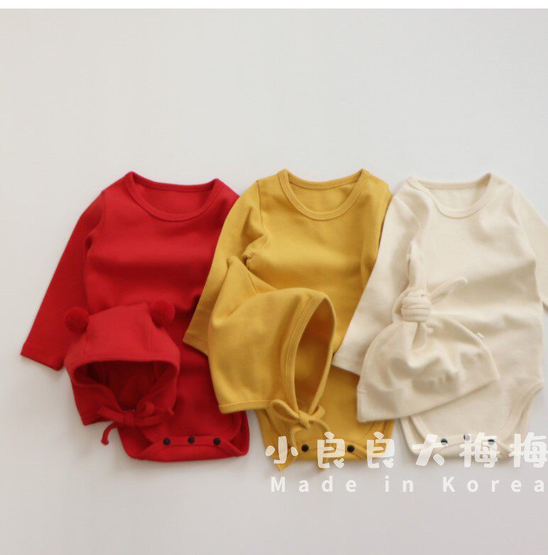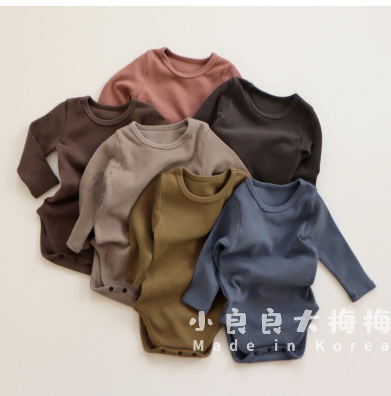 📚 韩国进口婴儿加厚磨毛纯棉打底连体衣家居爬服护肚裤套装peekaboo