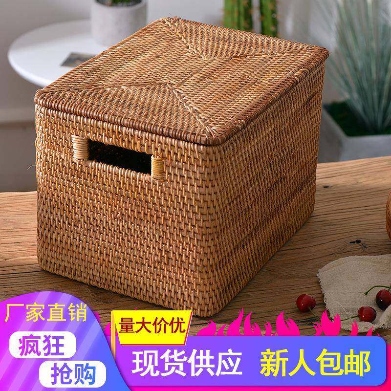 📚 爆AL561716工款秋藤编收纳篮手编织收纳筐大盖北欧框轻奢带CD书籍