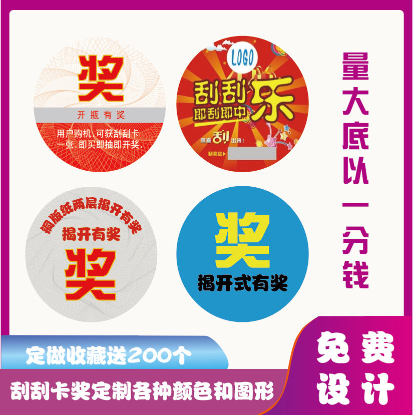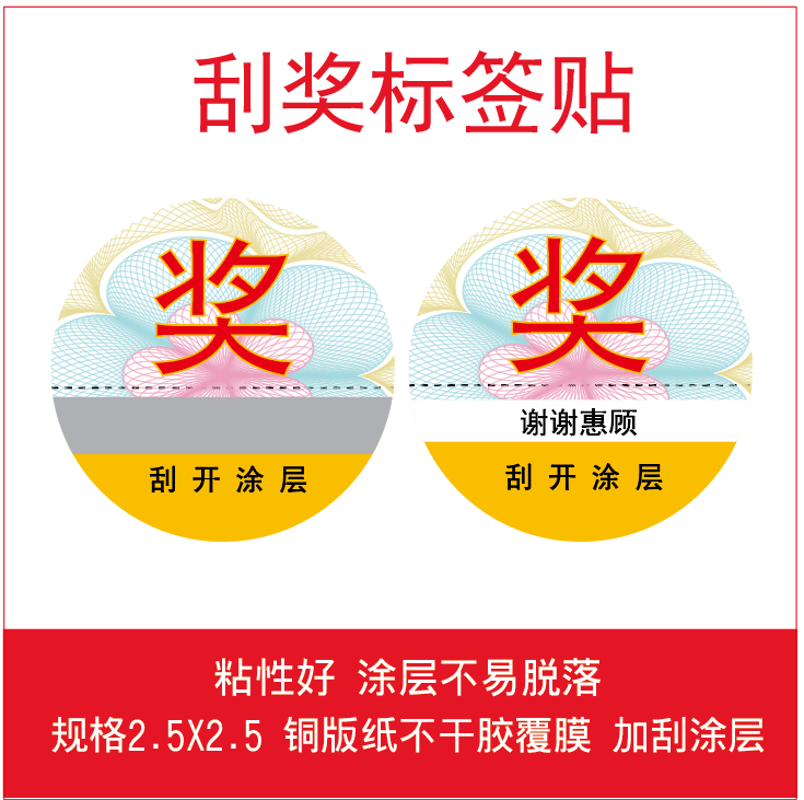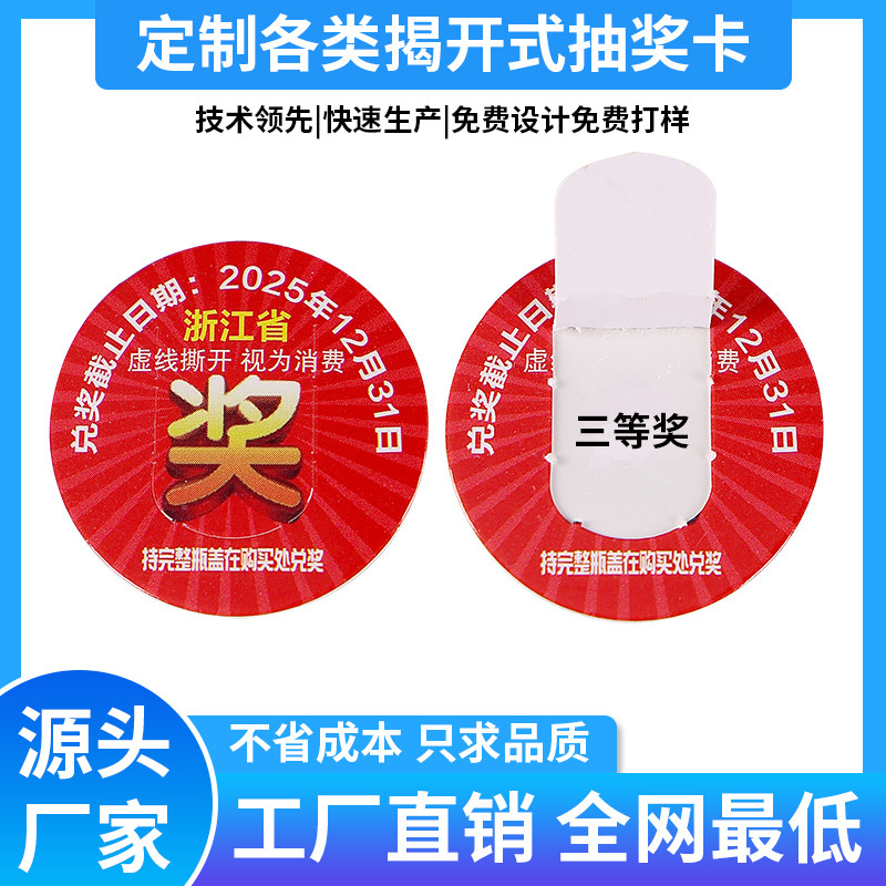 📚 定制刮刮卡奖品瓶盖贴酒瓶揭开式奖涂层防伪中奖印刷贴纸小卡片