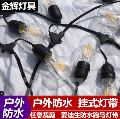 📚 户外庭院装饰防水钨丝灯串爱迪生灯泡经典复古暖白灯带串灯跑马灯