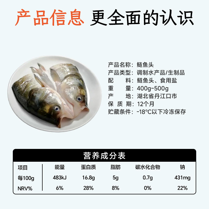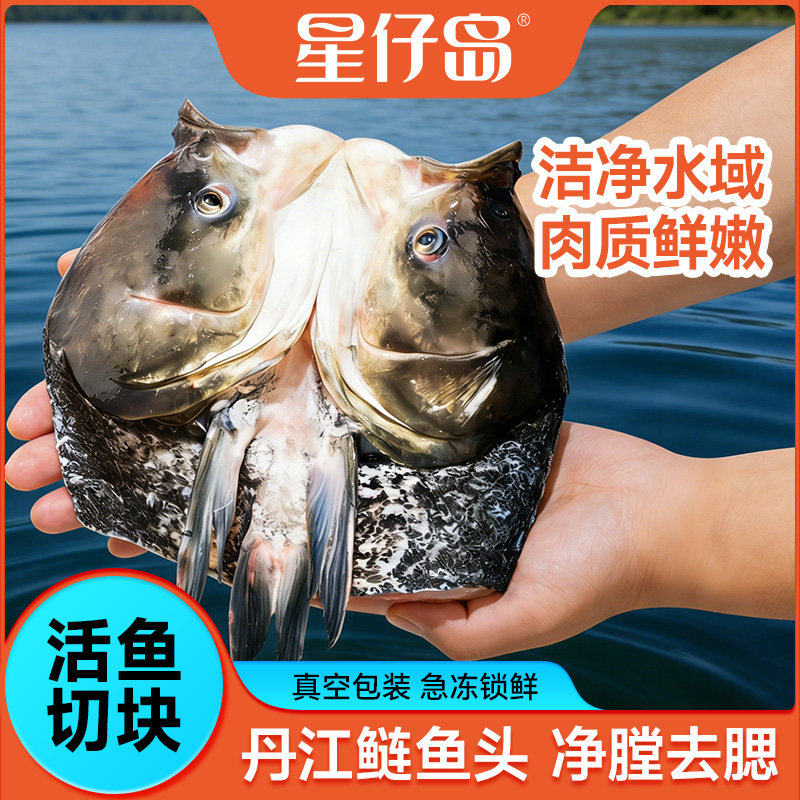 📚 【星仔岛】丹江口白鲢鱼头400-500g新鲜现杀淡水鱼煲汤剁椒鱼头
