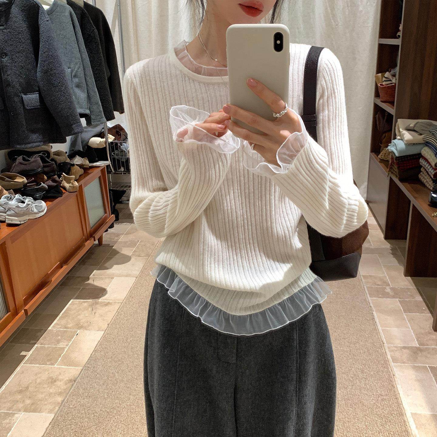 📚 YNVN韩系甜美蕾丝边羊毛针织衫女秋冬设计感小众休闲百搭打底上衣