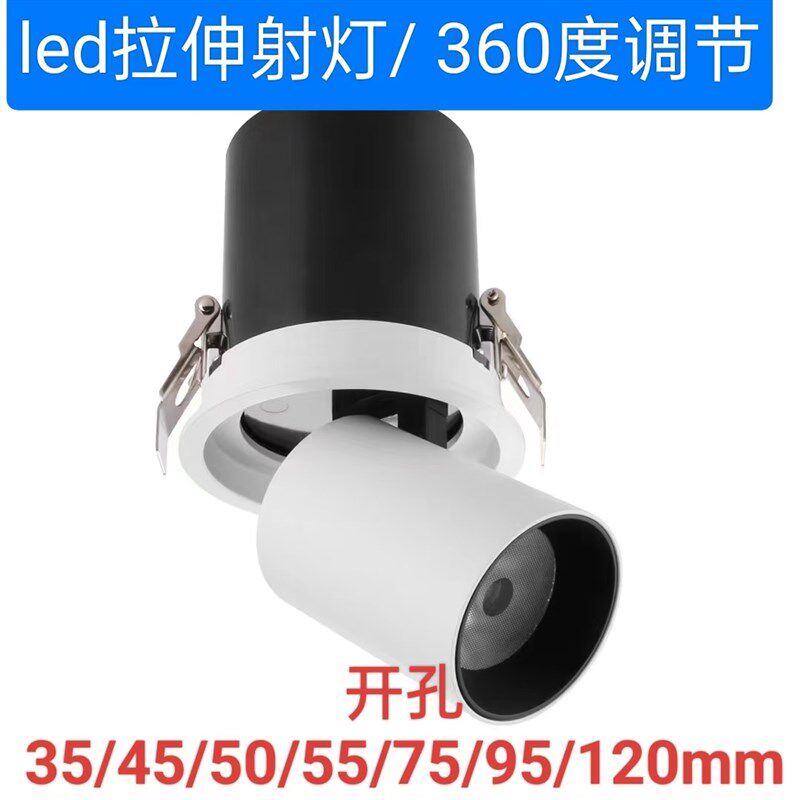 📚 led拉伸射灯嵌入式可伸缩旋转调节商超工程服装店展厅小开孔射灯