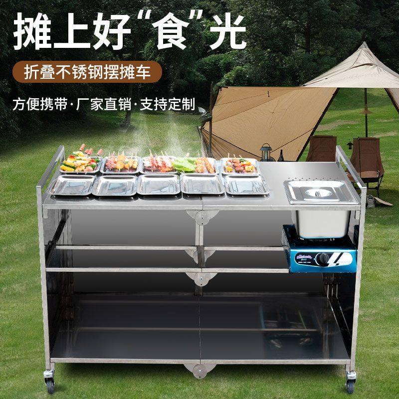 📚 折叠小吃车商用移动不锈钢网红餐车夜市流动摆摊多功能推车架子