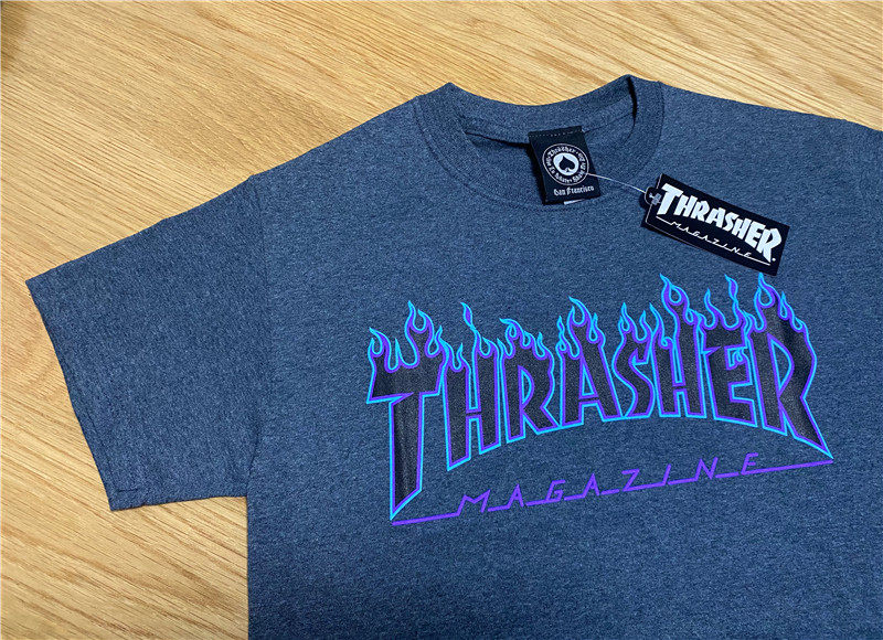 📚 【羔羊House】Thrasher 美版 超帅灰紫灰蓝火焰短袖T恤情侣款