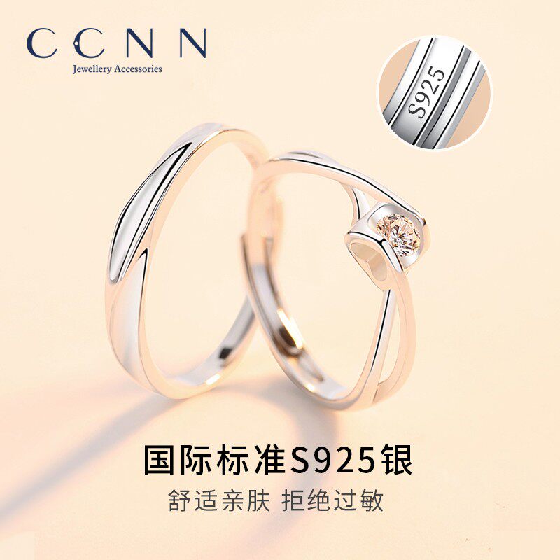 📚 情侣戒指纯银一对男女款对戒简约小众设计素圈刻字圣诞礼物送女友