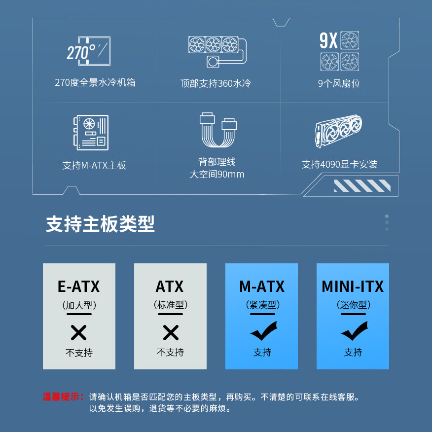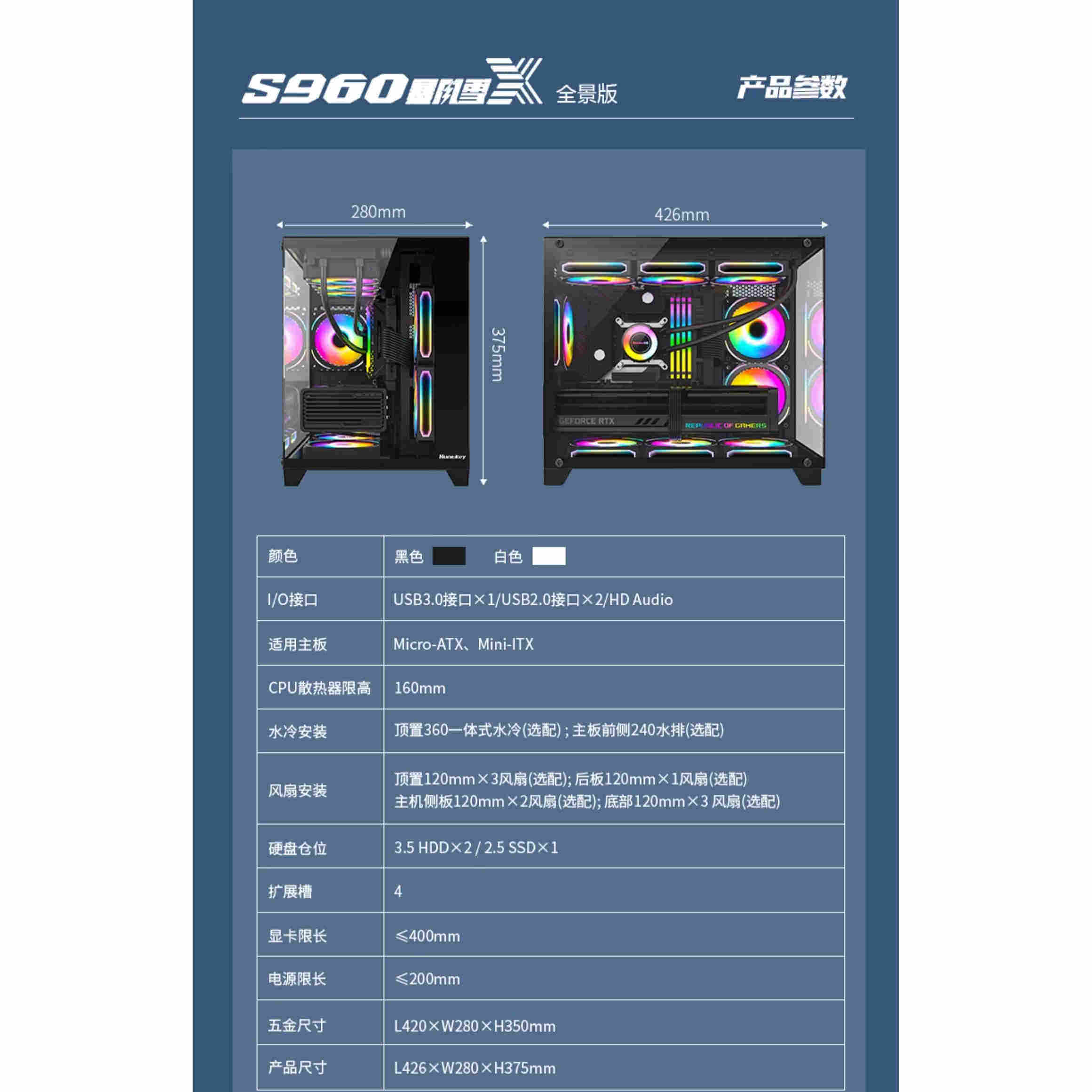 📚 航嘉机箱S960暴风雪X全景海景房电脑机箱无立柱钢化玻璃支360水冷