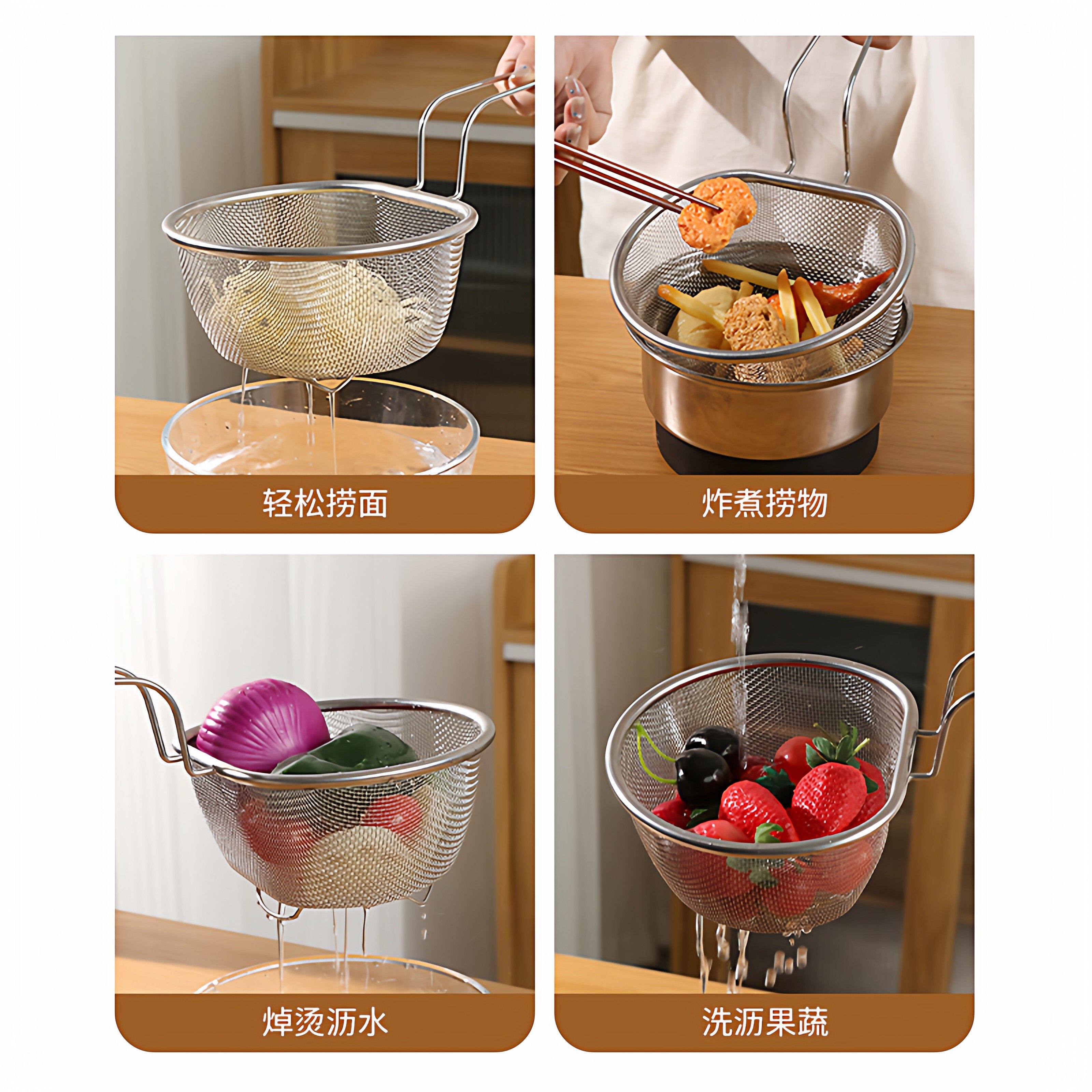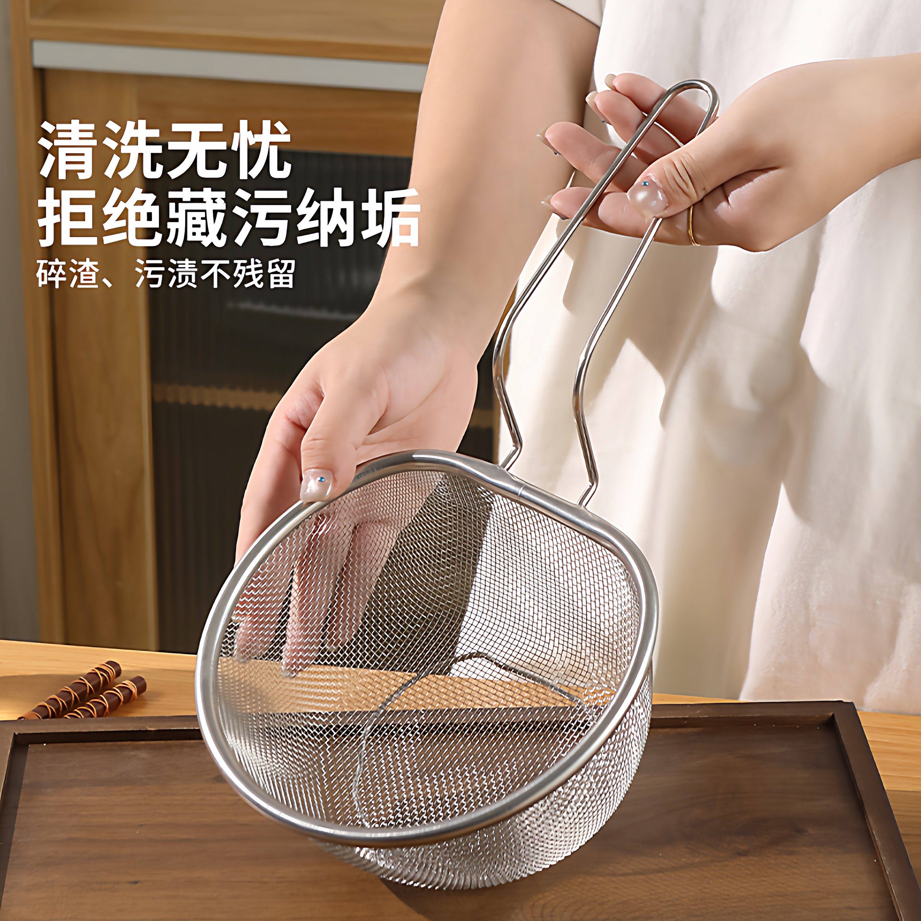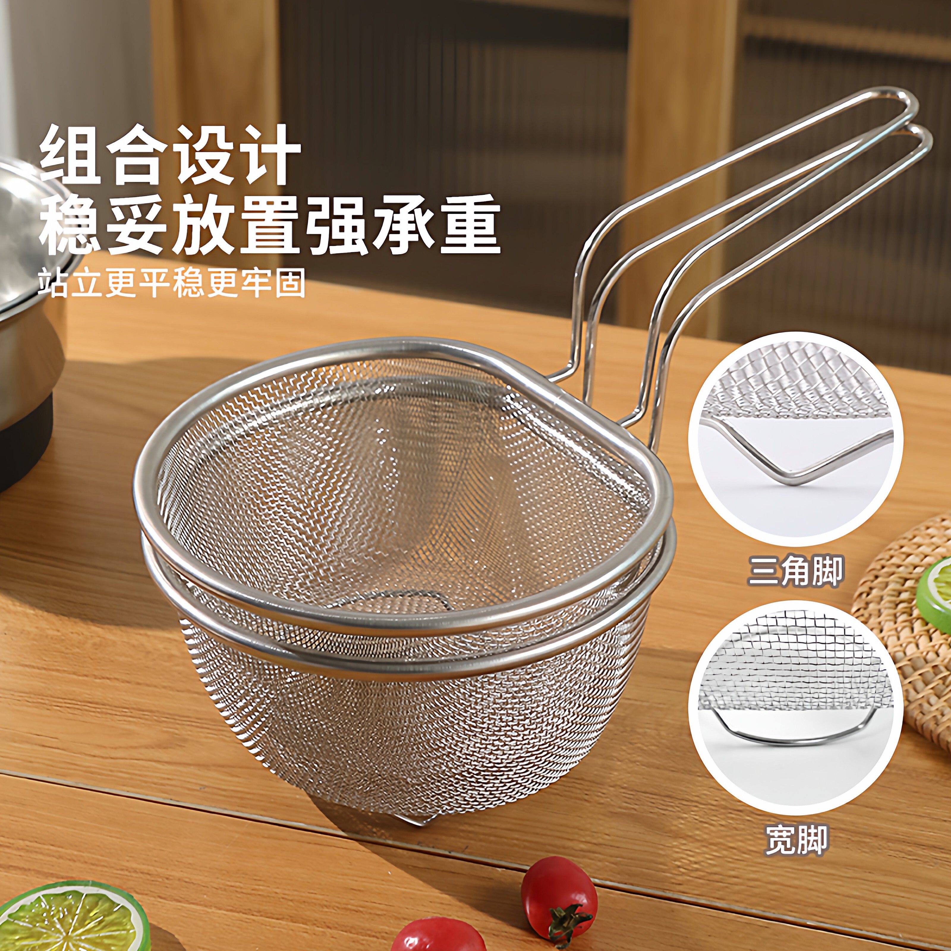 📚 不锈钢漏勺网篮厨房捞煮面条油炸火锅烫粉沥水洗菜大过滤网筛
