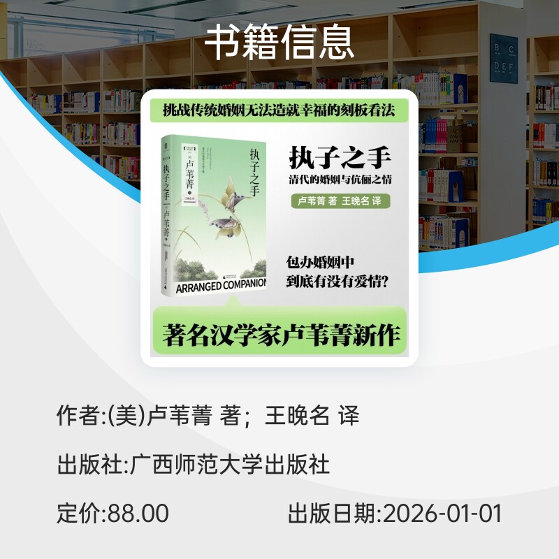 📚 执子之手:清代的婚姻与伉俪之情 中国女性史研究系列 卢苇菁 著 一本探讨清代包办婚姻中夫妻关系和亲密情感的研究著作 正版书籍