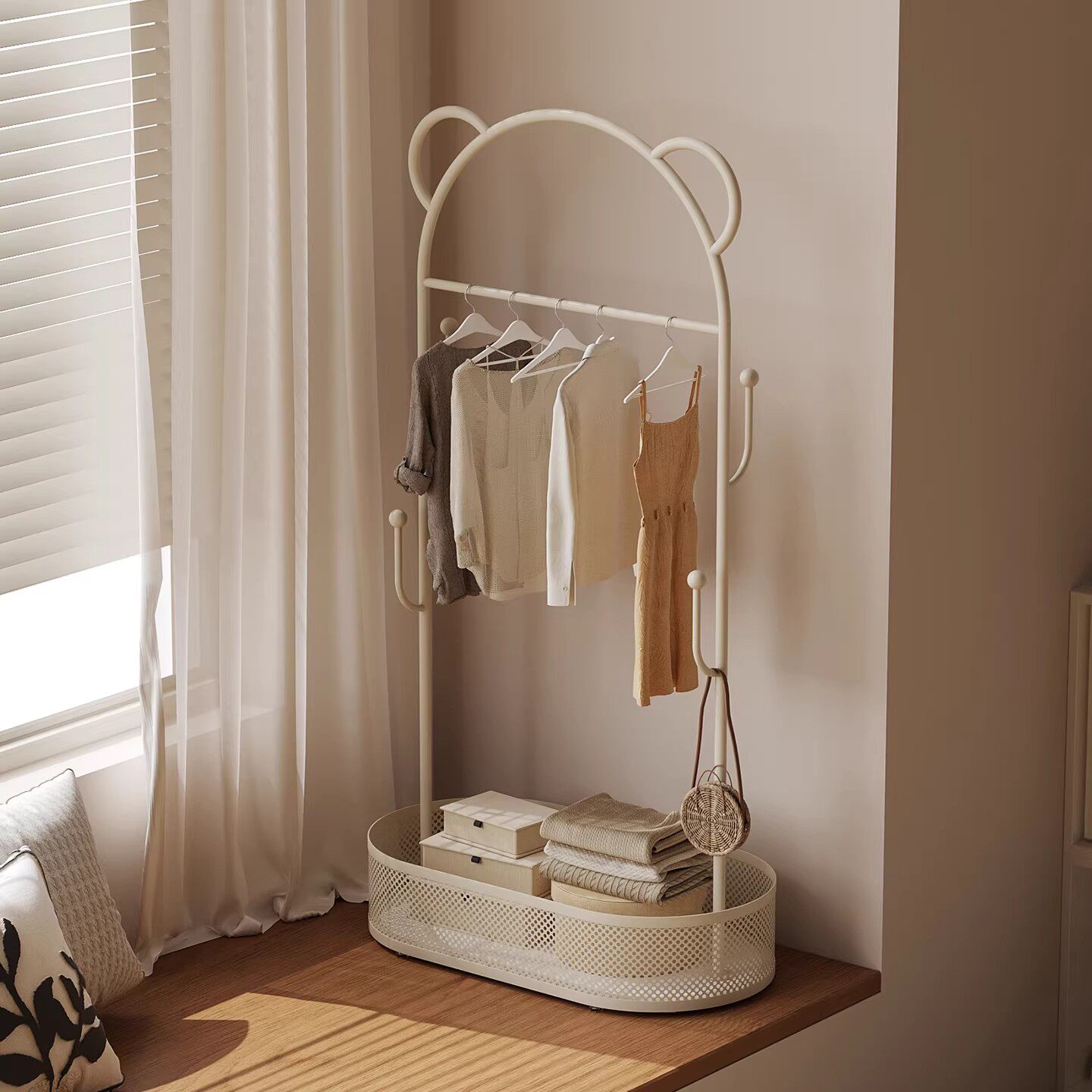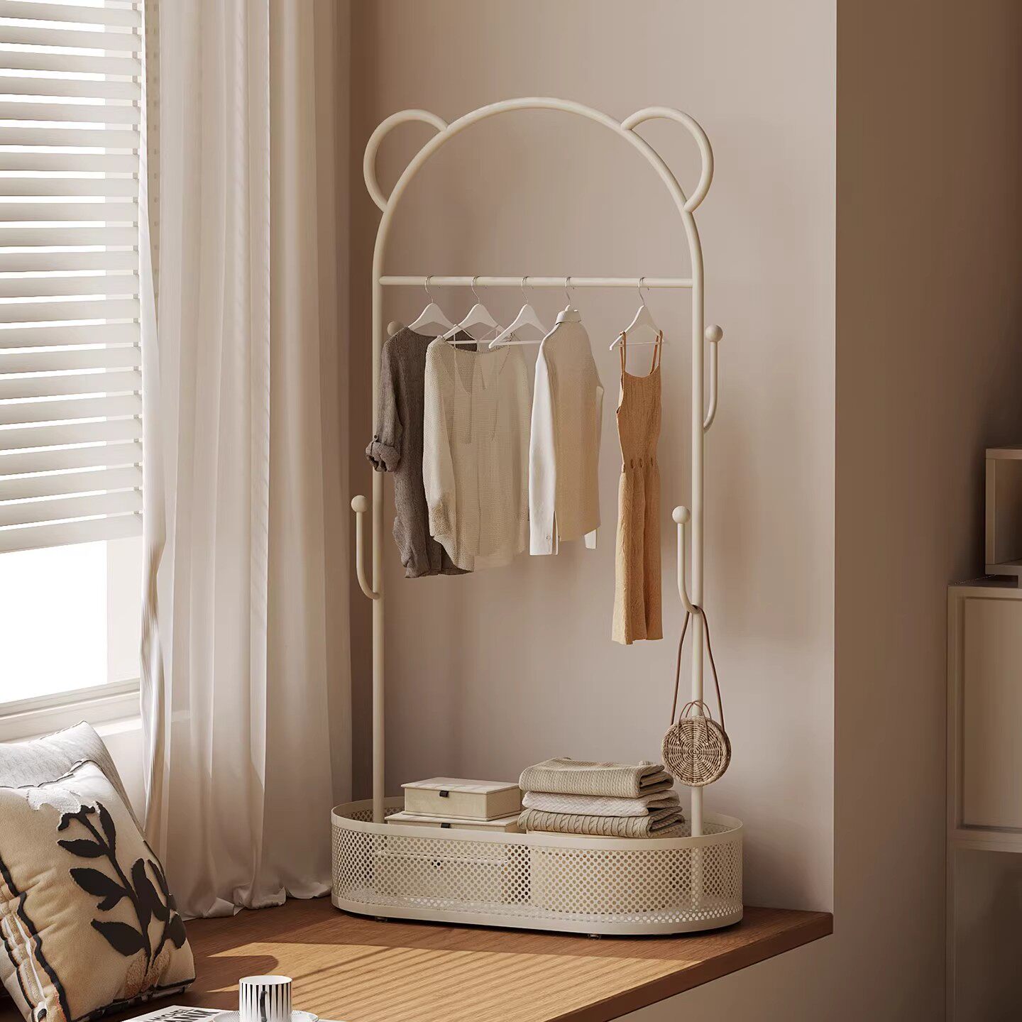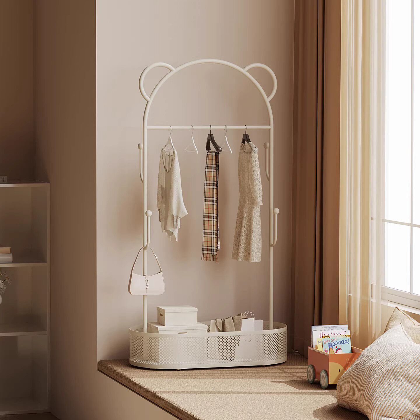 📚 飘窗挂衣架卧室双层衣帽架放衣服置物架小红书同款次净衣架收纳