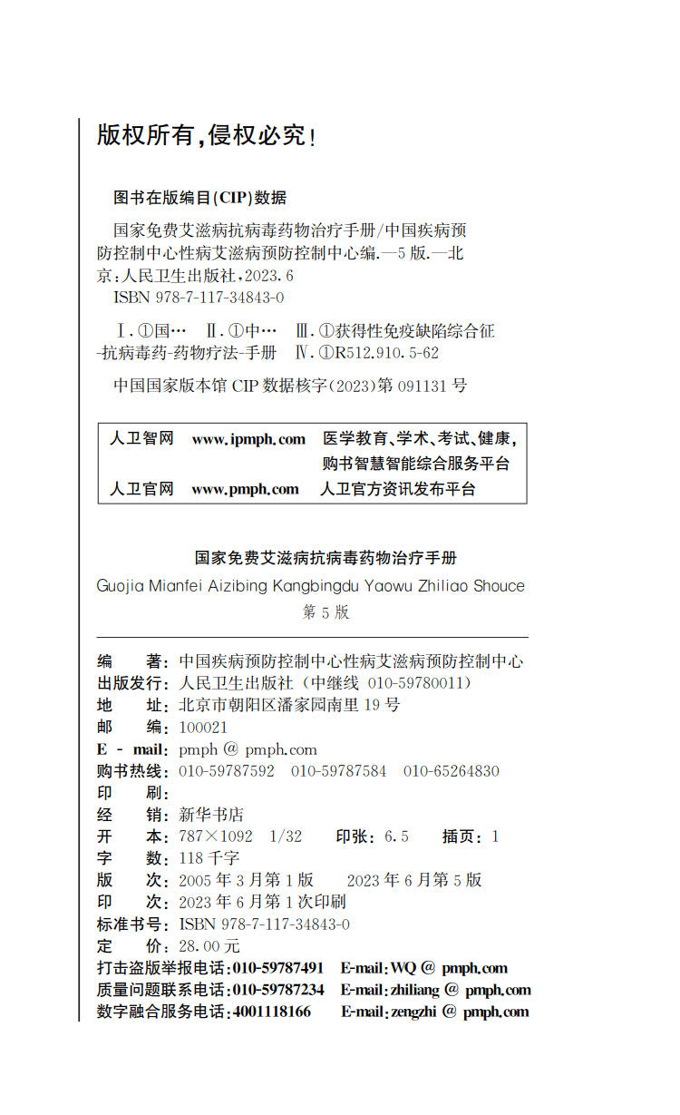 📚 现货正版 平装 国家免费艾滋病抗病毒药物治疗手册第5版中国疾病预防控制中心性病艾滋病预防控制中心人民卫生出版社9787117348430