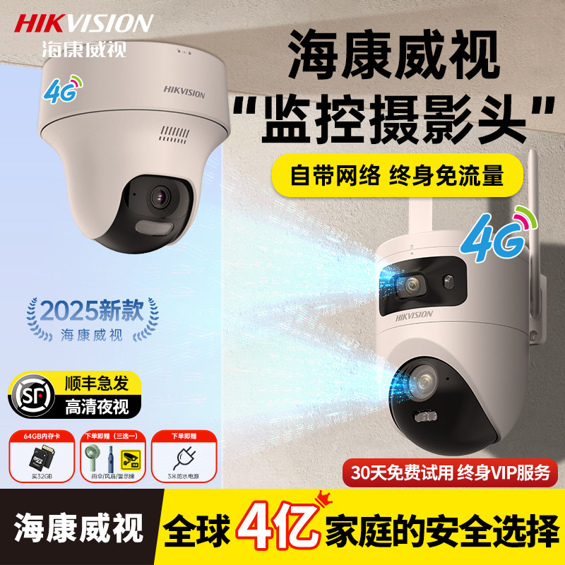 📚 海康威视摄影摄像头4g终身免流量wifi家用监控器360度无死角室外