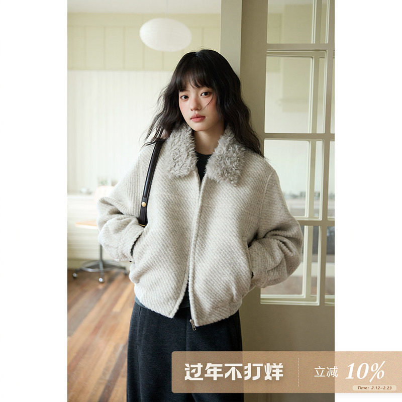 📚 夕蒙2025新款冬季韩系气质上衣短款小个子巨好看绝美灰色翻领外套