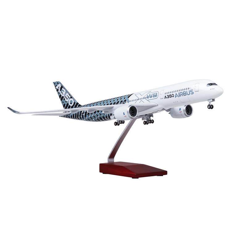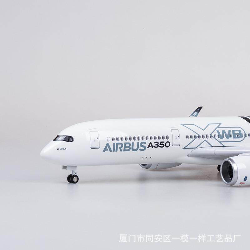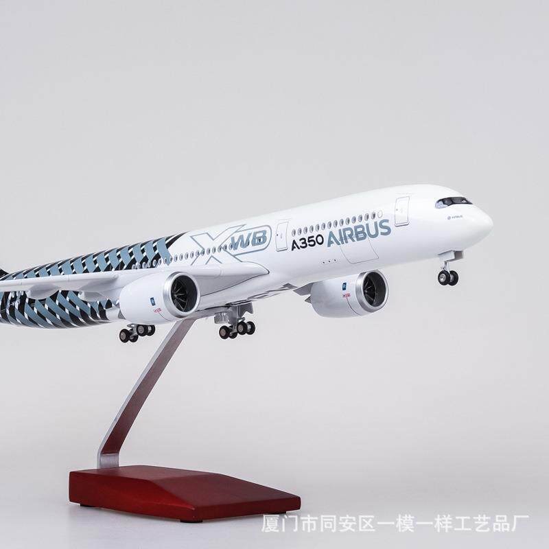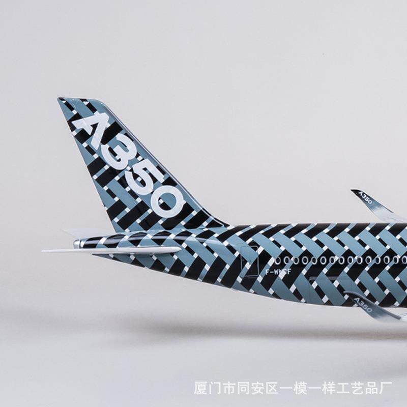 📚 带轮带灯47cm空客A350仿真民航客机飞机模型原型机黑色碳纤维涂装