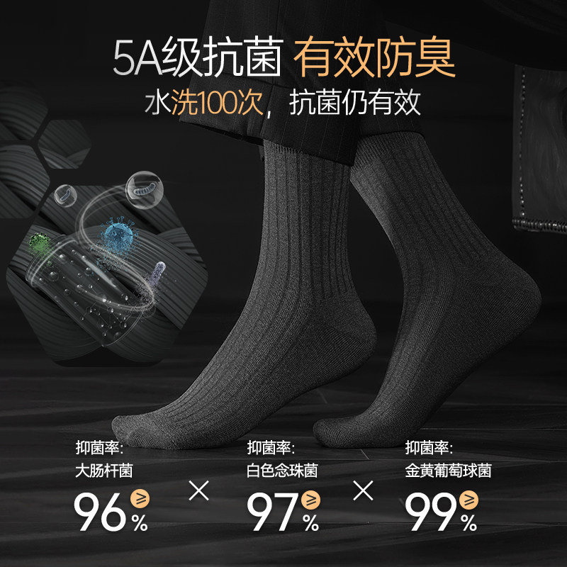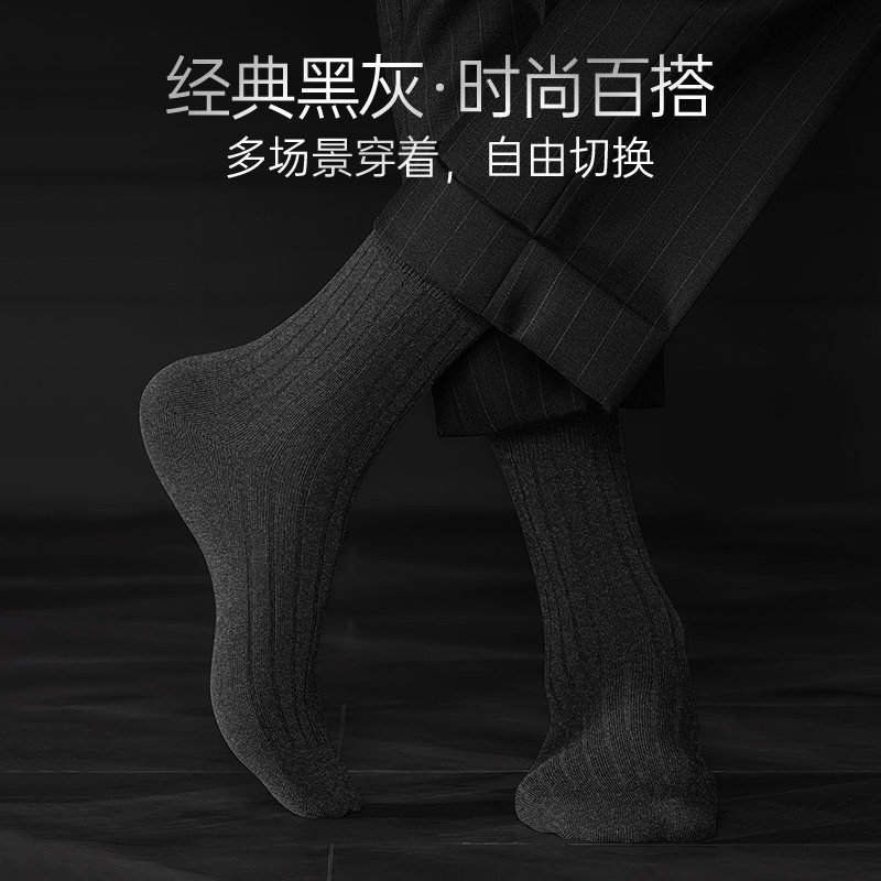 📚 100%棉袜子男纯棉袜秋冬款抗菌防臭透气黑色绅士袜抽条全棉中筒袜