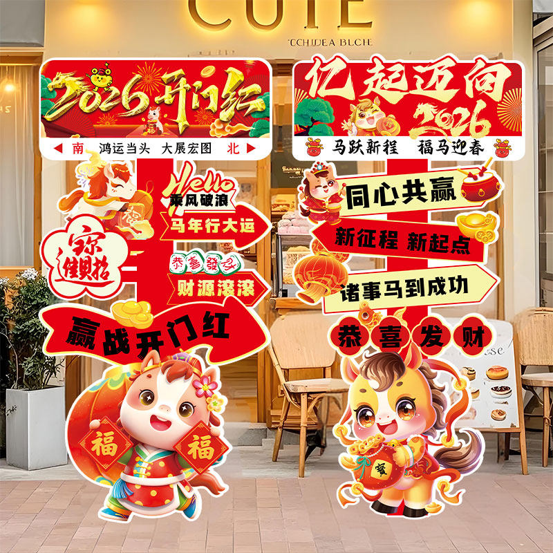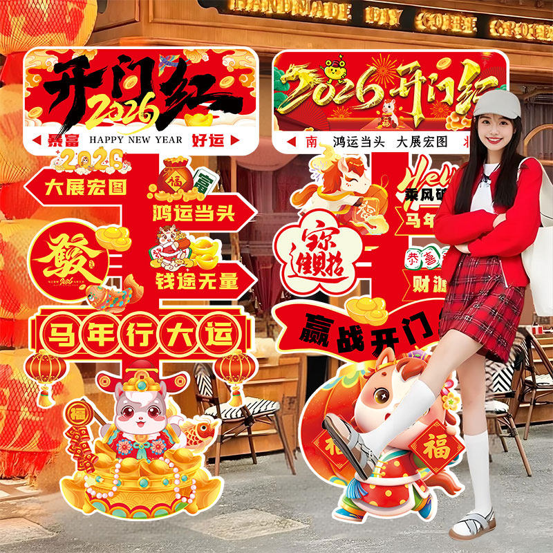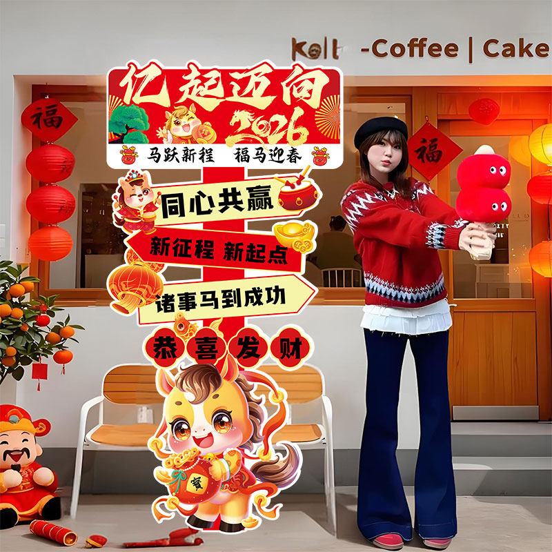 📚 2026马年新年开门红指路牌布置春节职场氛围装饰布置年会kt板道具