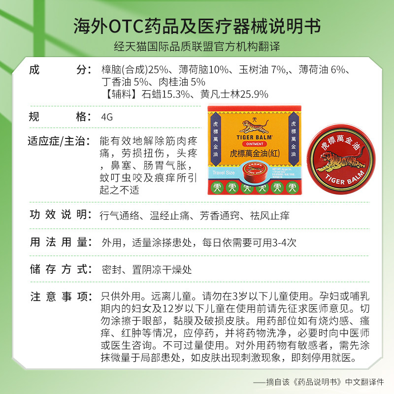 📚 新加坡虎标万金油红白色头痛万金油老虎牌香港版肩颈舒贴膏薄荷油