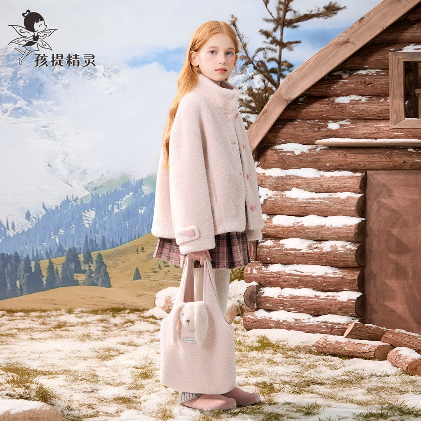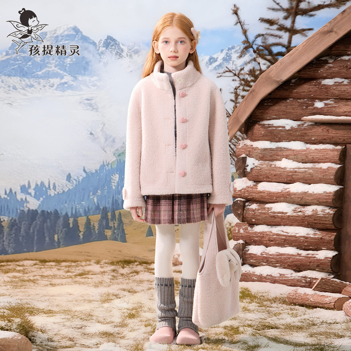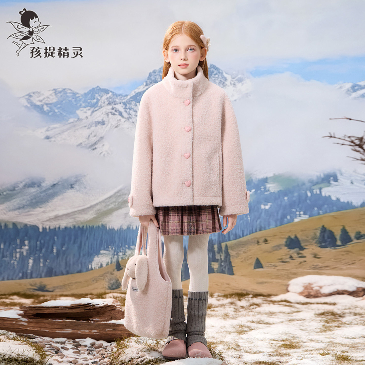 📚 女童粉色立领仿羊羔毛风格外套2025秋冬新款洋气中大童毛绒外套