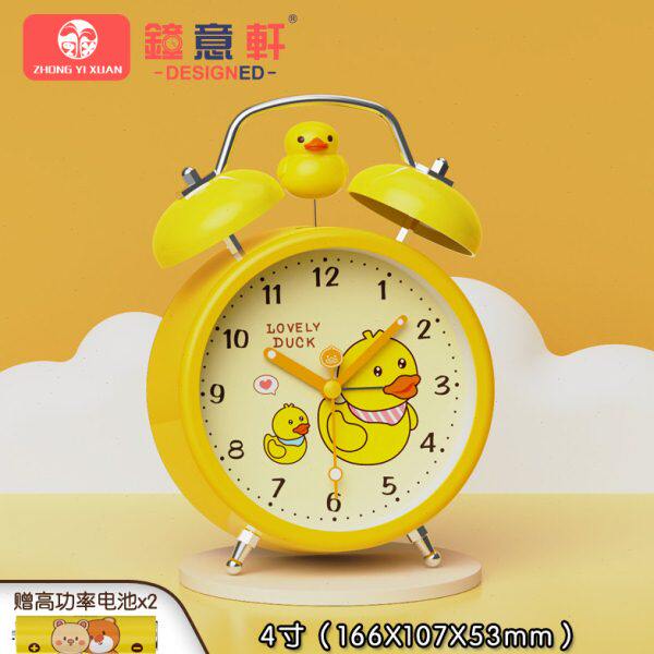📚 钟意轩儿童卡通小闹钟学生用耐摔静音电池款男孩女孩可爱强力叫醒