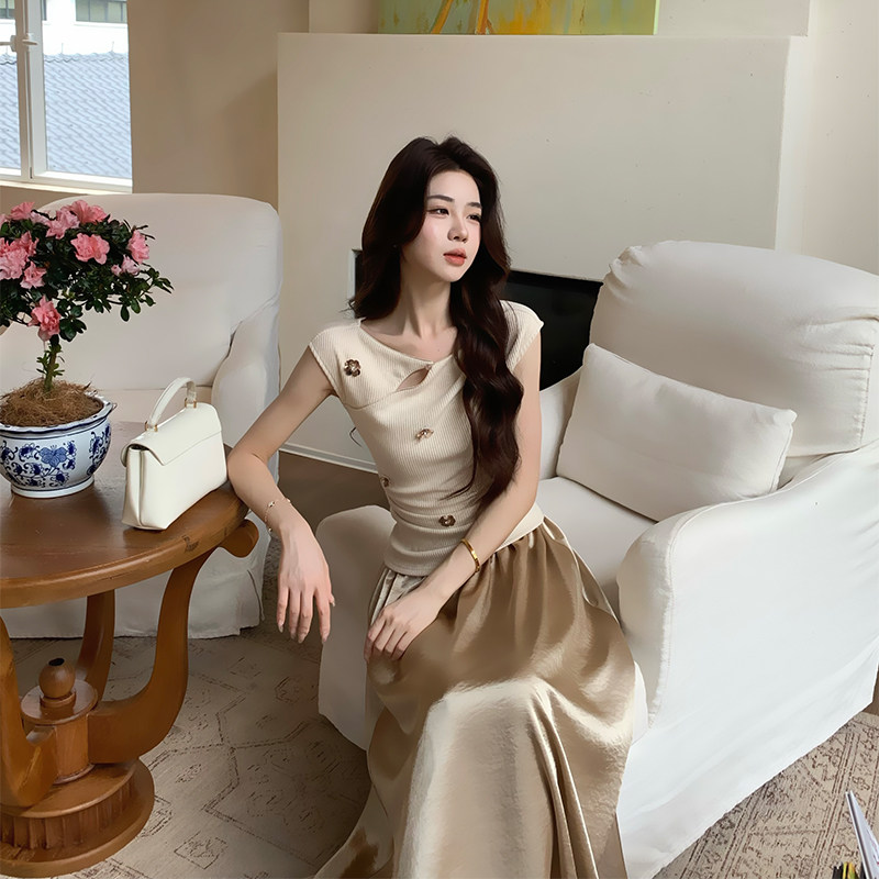 💥种草!木子李的李2025设计感上衣收腰针织衫夏高腰半身裙新中式套装,券后价89,让你一秒入秋的时尚新宠!💖