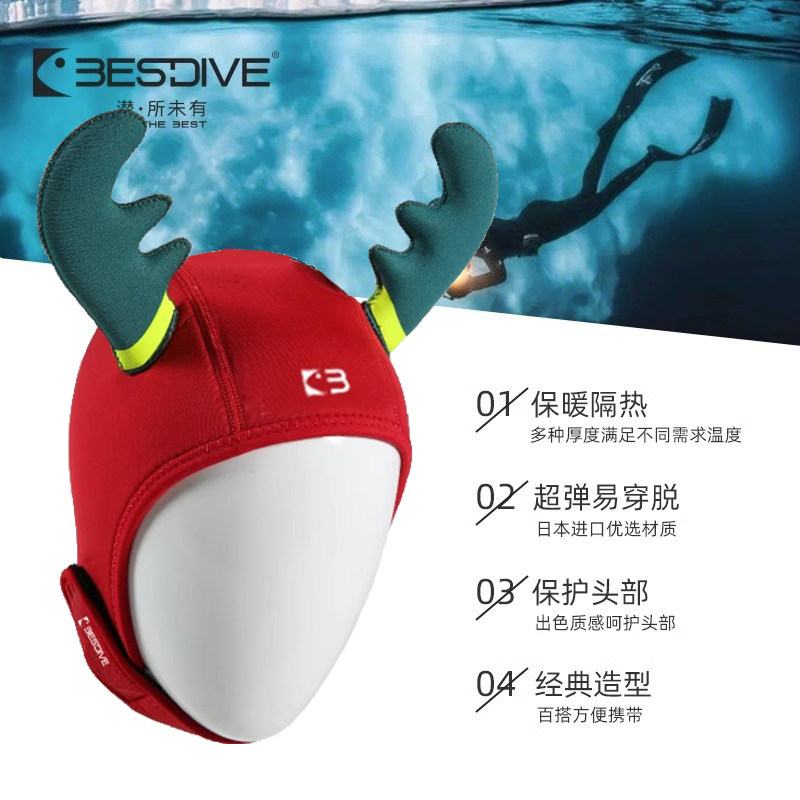 📚 BESTDIVE潜好潜水头套男女潜水帽卡通保暖自由潜水肺渔猎冬泳头套