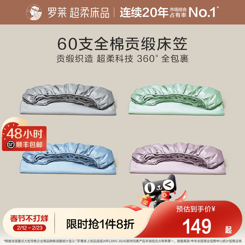 📚 罗莱家纺60支床笠床单纯棉全棉拆单件床罩学生宿舍单人床垫保护罩