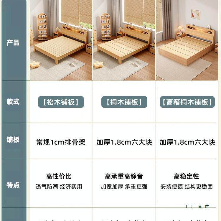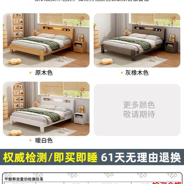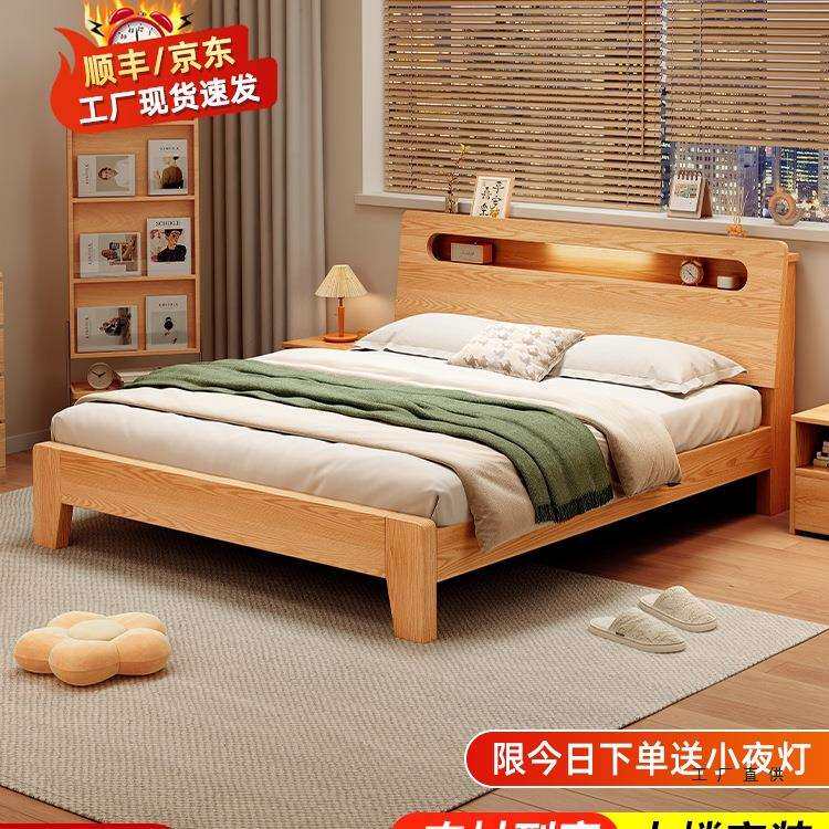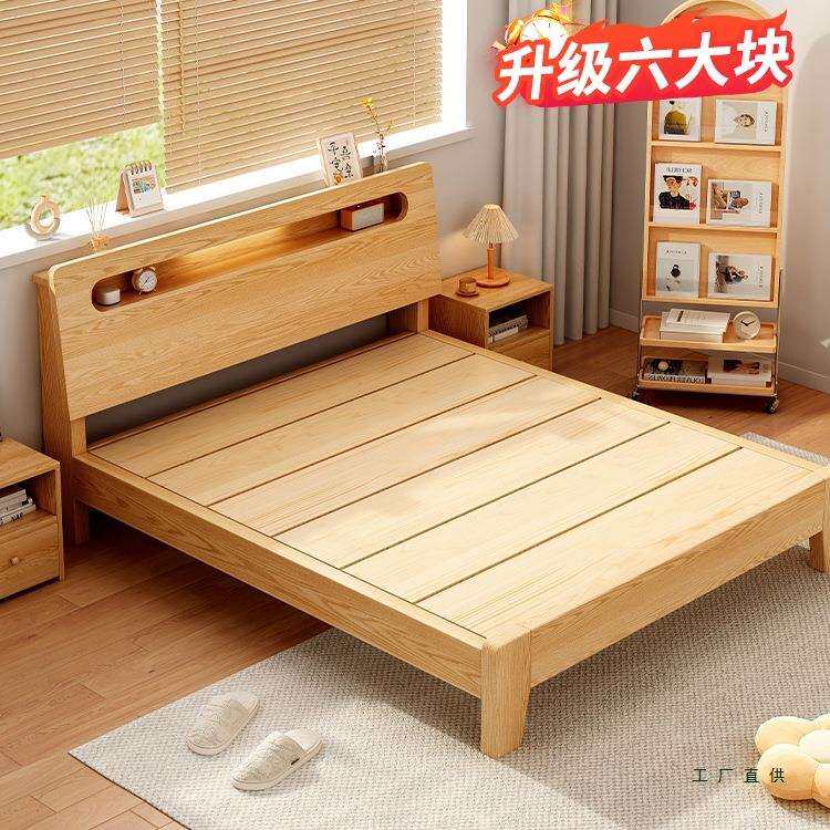 📚 实木床简约现代加厚1米8双人床主卧1米5的出租房家用1米2单人床架