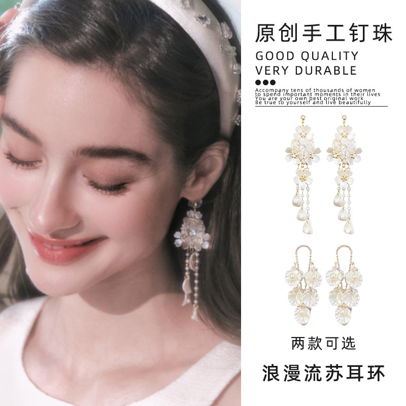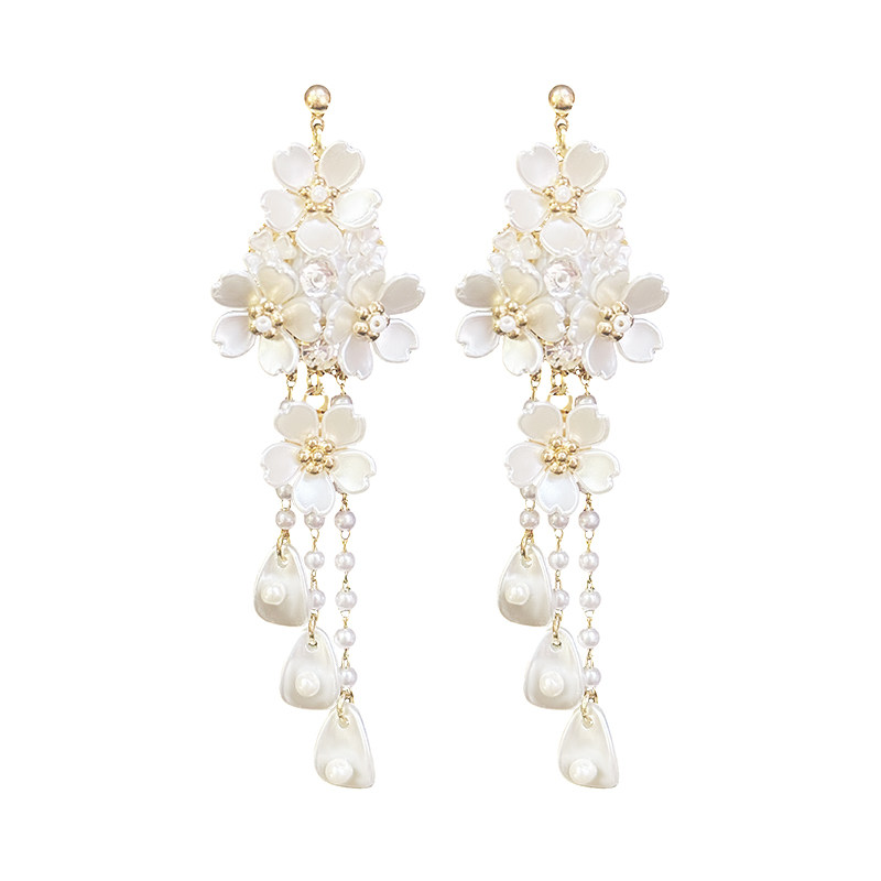 📚 FLONAKED立体花朵繁花浪漫度假耳坠白色流苏花饰耳环