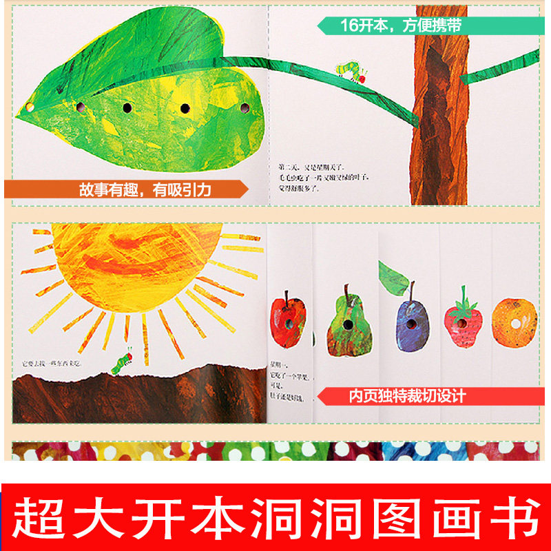 📚 好饿的毛毛虫绘本洞洞书硬壳精装版0-1-2-3-4-6周岁幼婴儿童早教启蒙认知童书宝宝故事书大开本立体翻翻图画书幼儿园亲子阅读童话