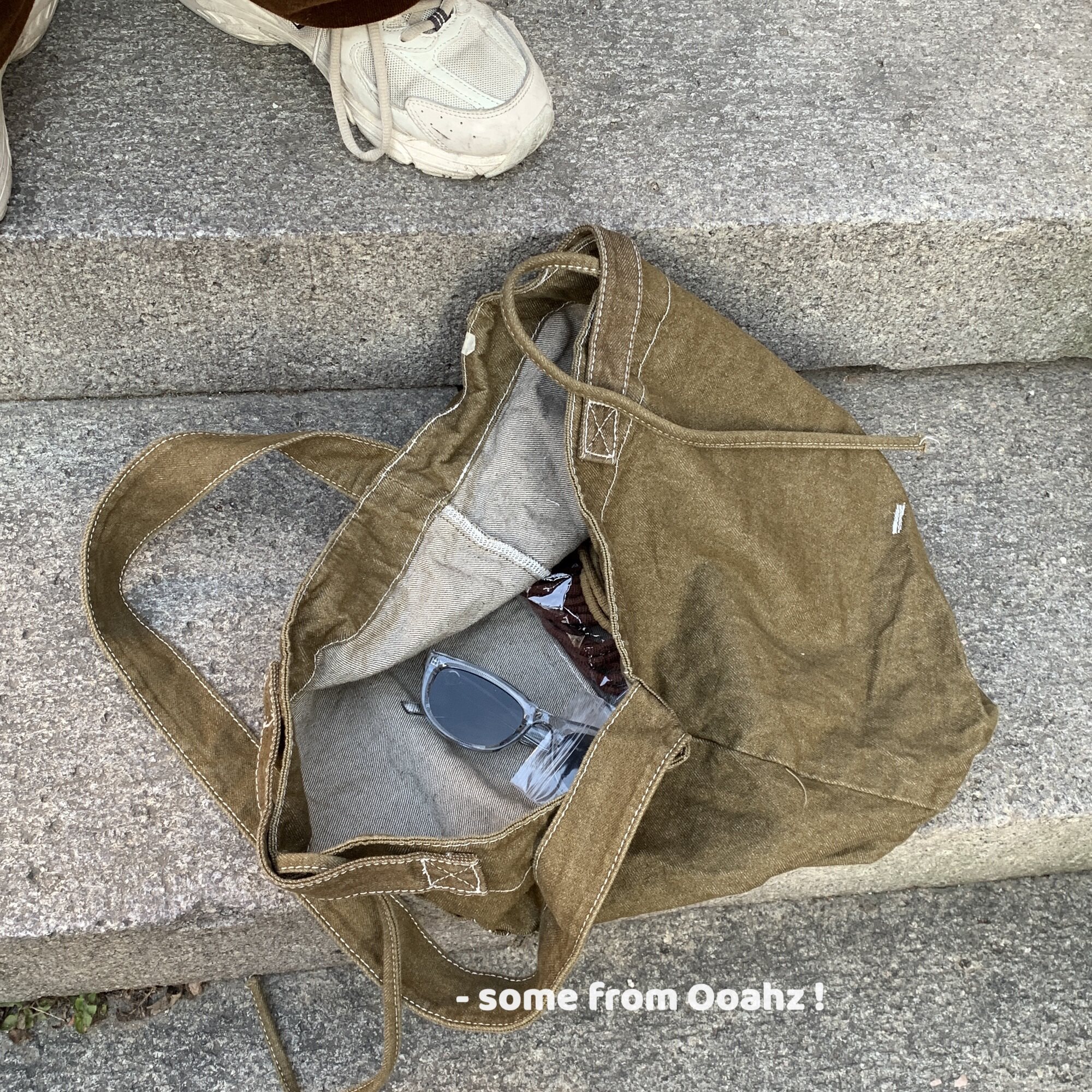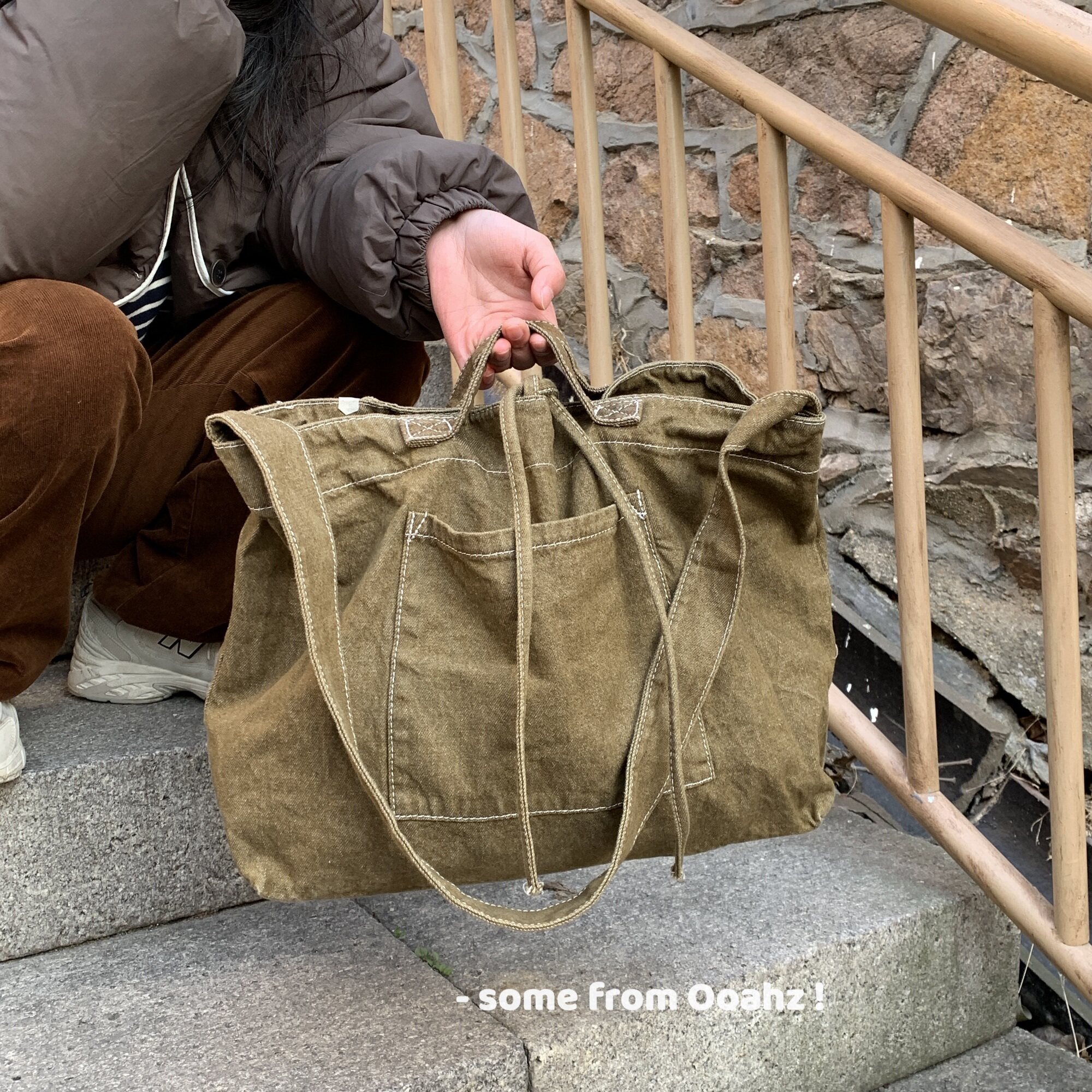 📚 《小鱼山路》卡其绿~洗水做旧复古单肩帆布包斜跨包简约ins女包包