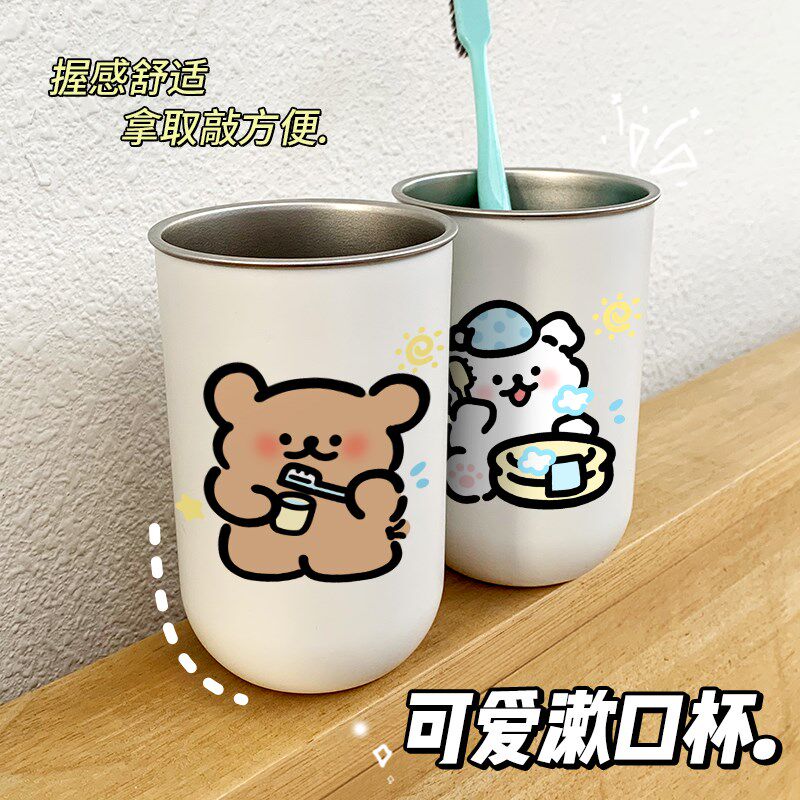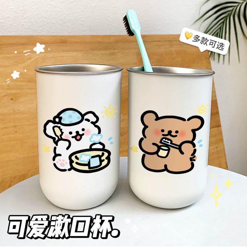 📚 线条小狗304不锈钢漱口杯情侣一对高颜值刷牙杯儿童洗漱杯子牙缸