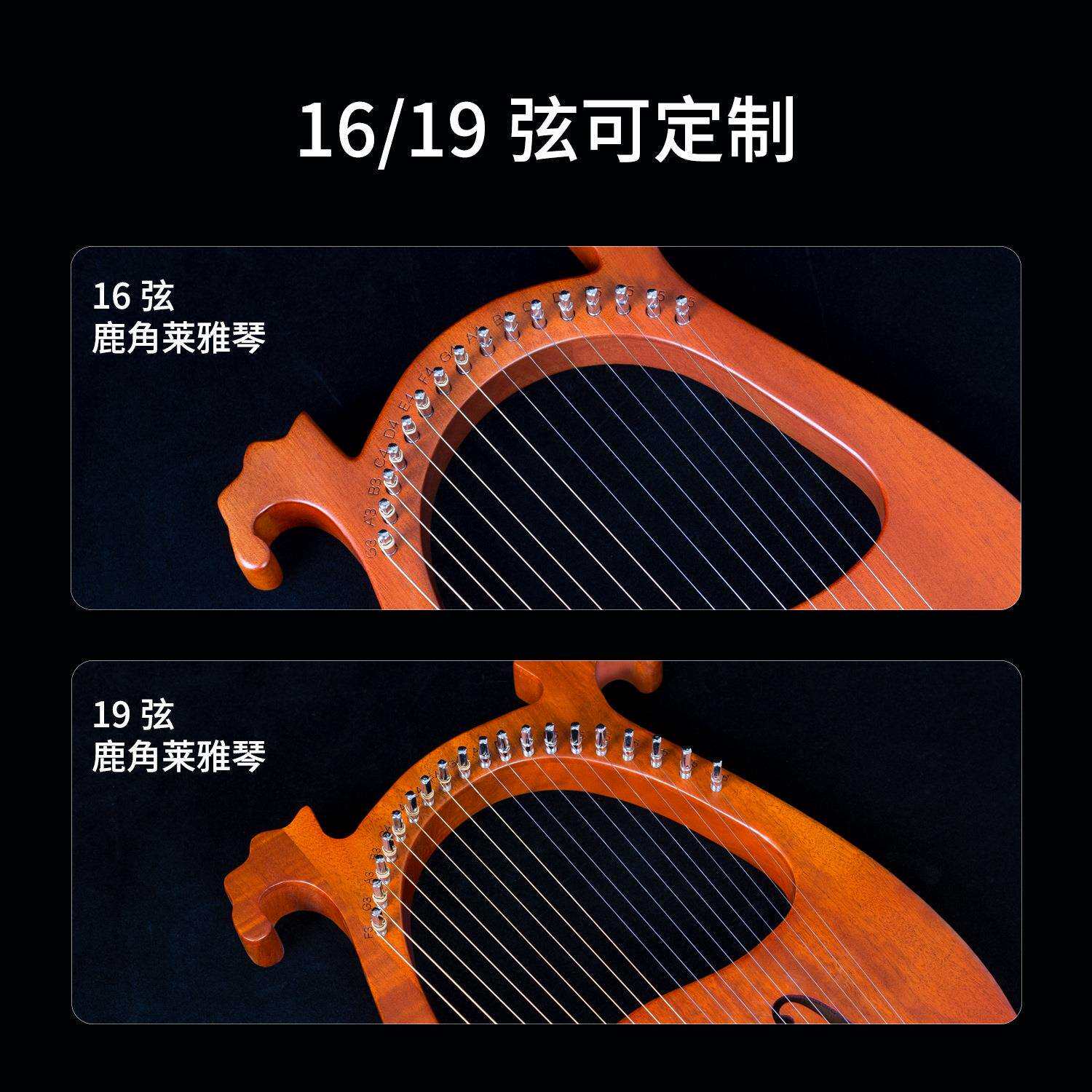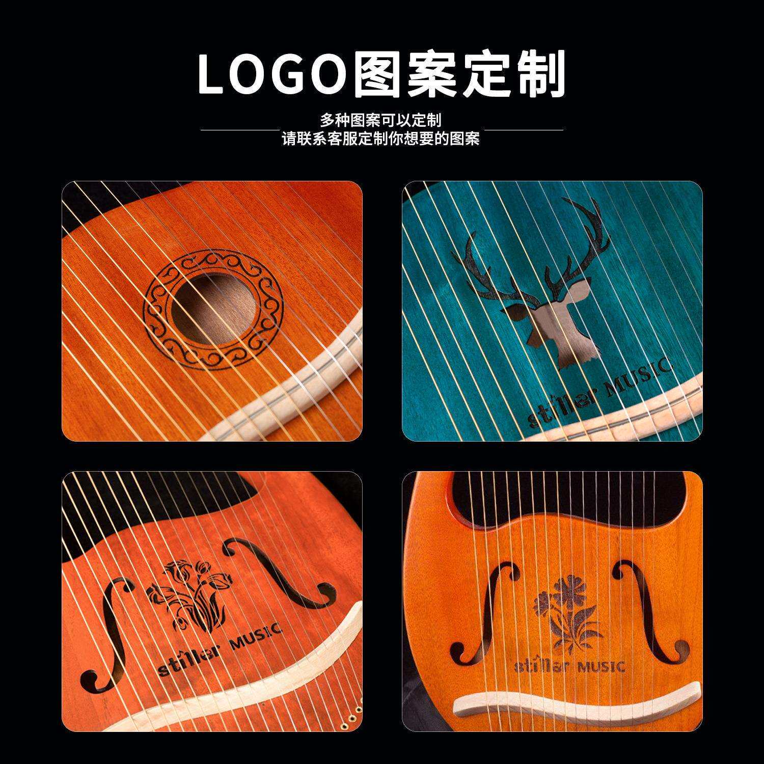 📚 跨境 莱雅琴16弦小竖琴易学里拉琴箜篌lyre琴 便携式乐器工厂直销