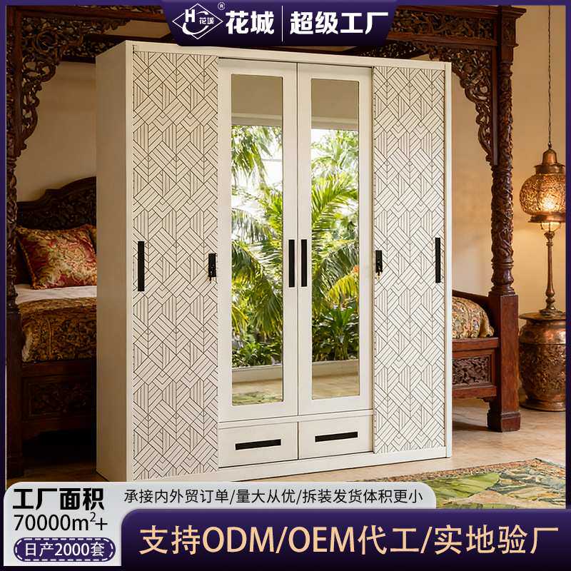 📚 跨境出口钢制家用印花柜储物柜阳台柜移门衣柜拆装推拉门收纳柜子