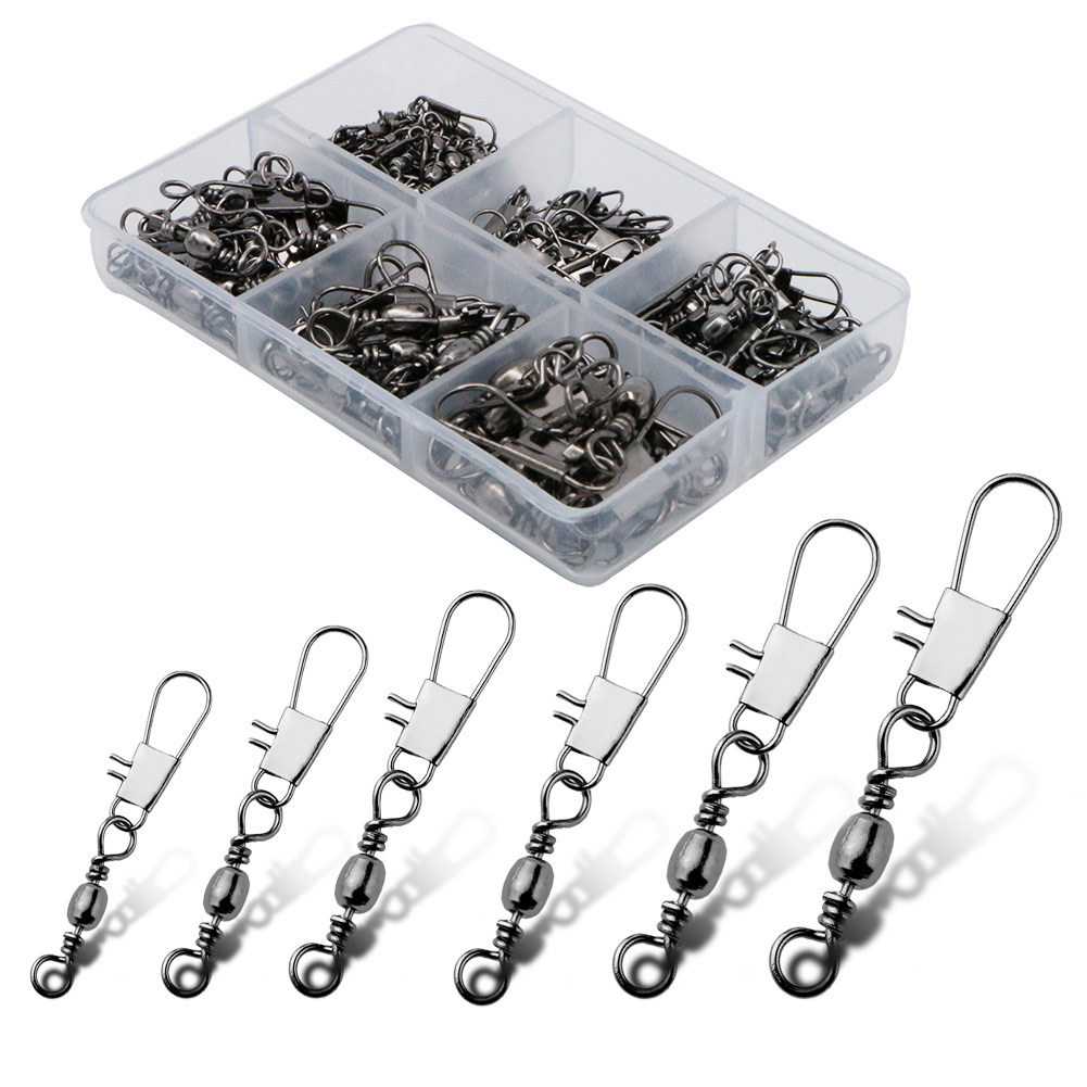 📚 100pcs/box 6 Size Swivel Fishing Connector Snap Pin Rolling