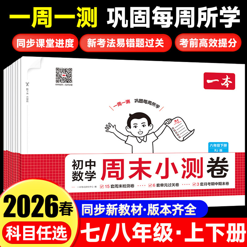 📚 2026春一本初中周末小测卷七八年级上下册数学语文英语物理政治历史地理生物人教版试卷测试卷全套初一初二单元培优卷期中期末检测