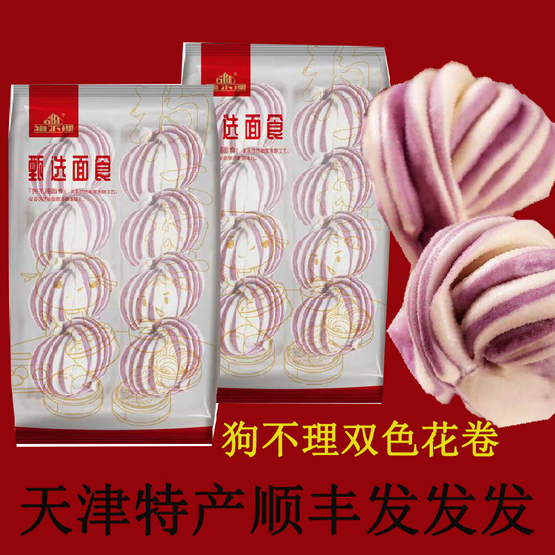 📚 天津特产狗不理双色花卷特色面食2袋16个批发馒头紫薯早餐顺丰发