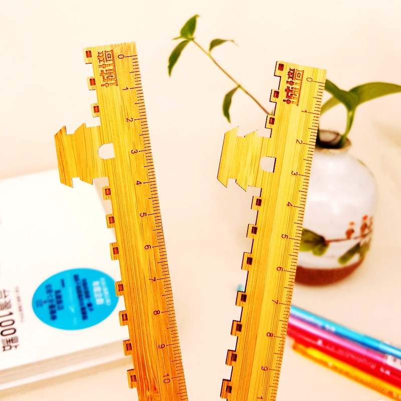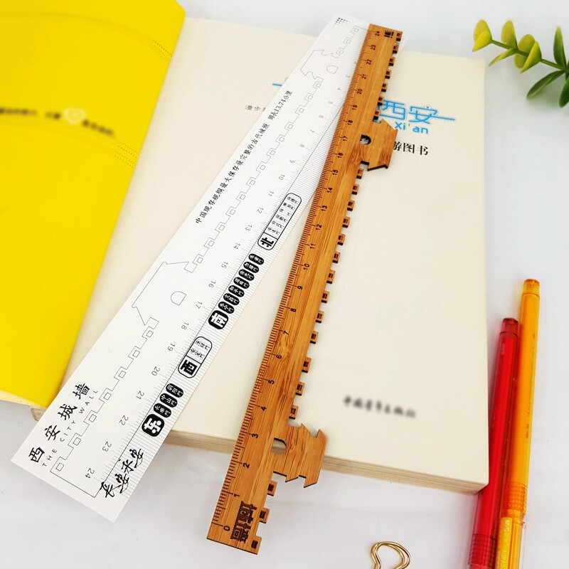 📚 西安旅游文创城墙造型原木尺子创意文具16-24cm刻度量尺镂空雕刻