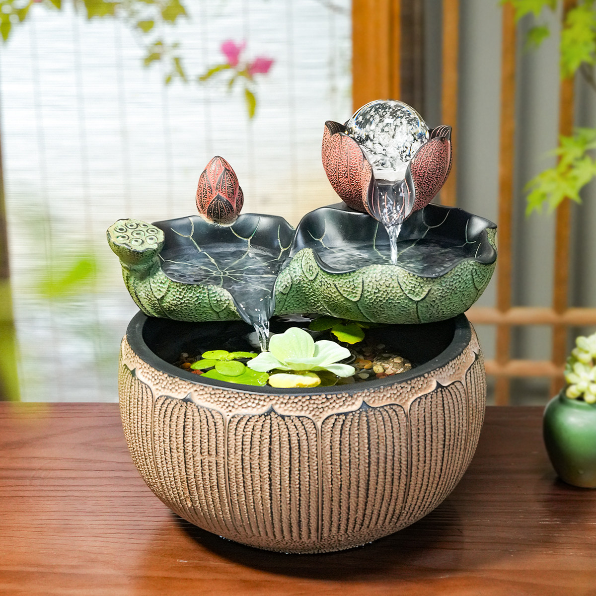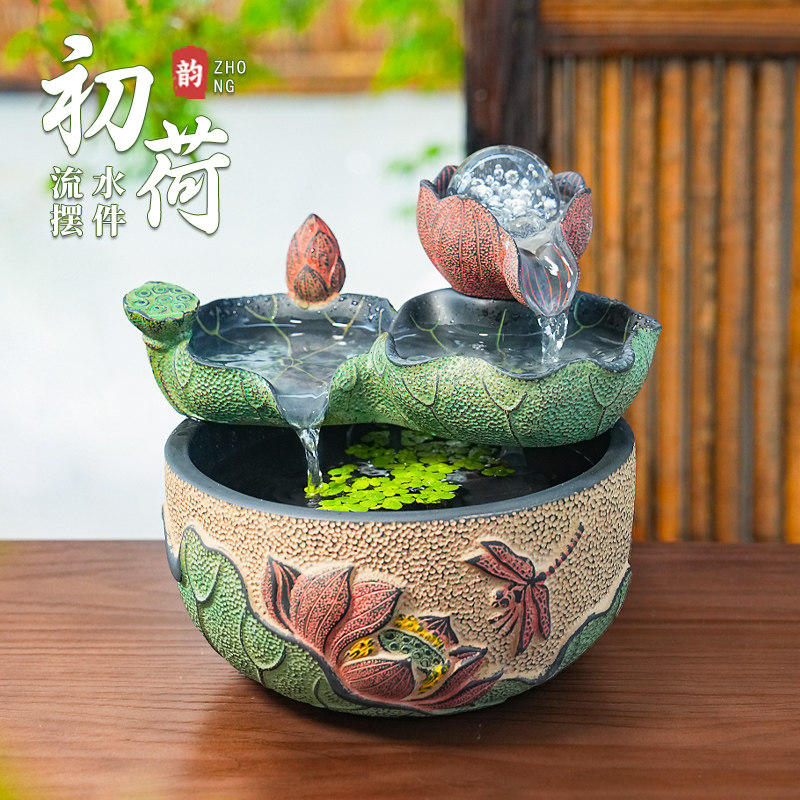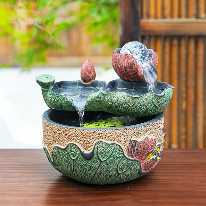📚 招财客厅流水摆件循环水风水轮室内客厅茶室桌面小水景喷泉小鱼缸
